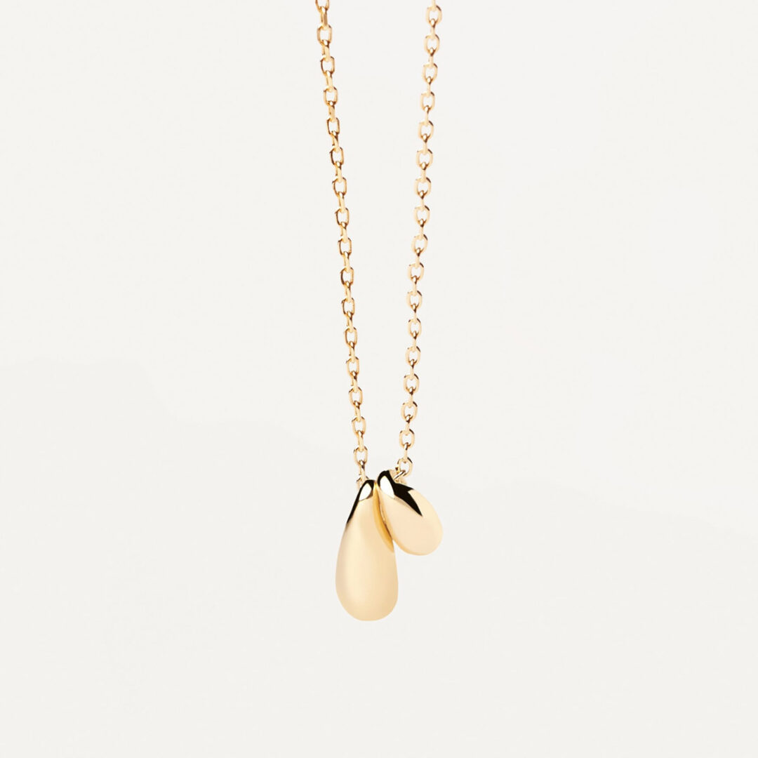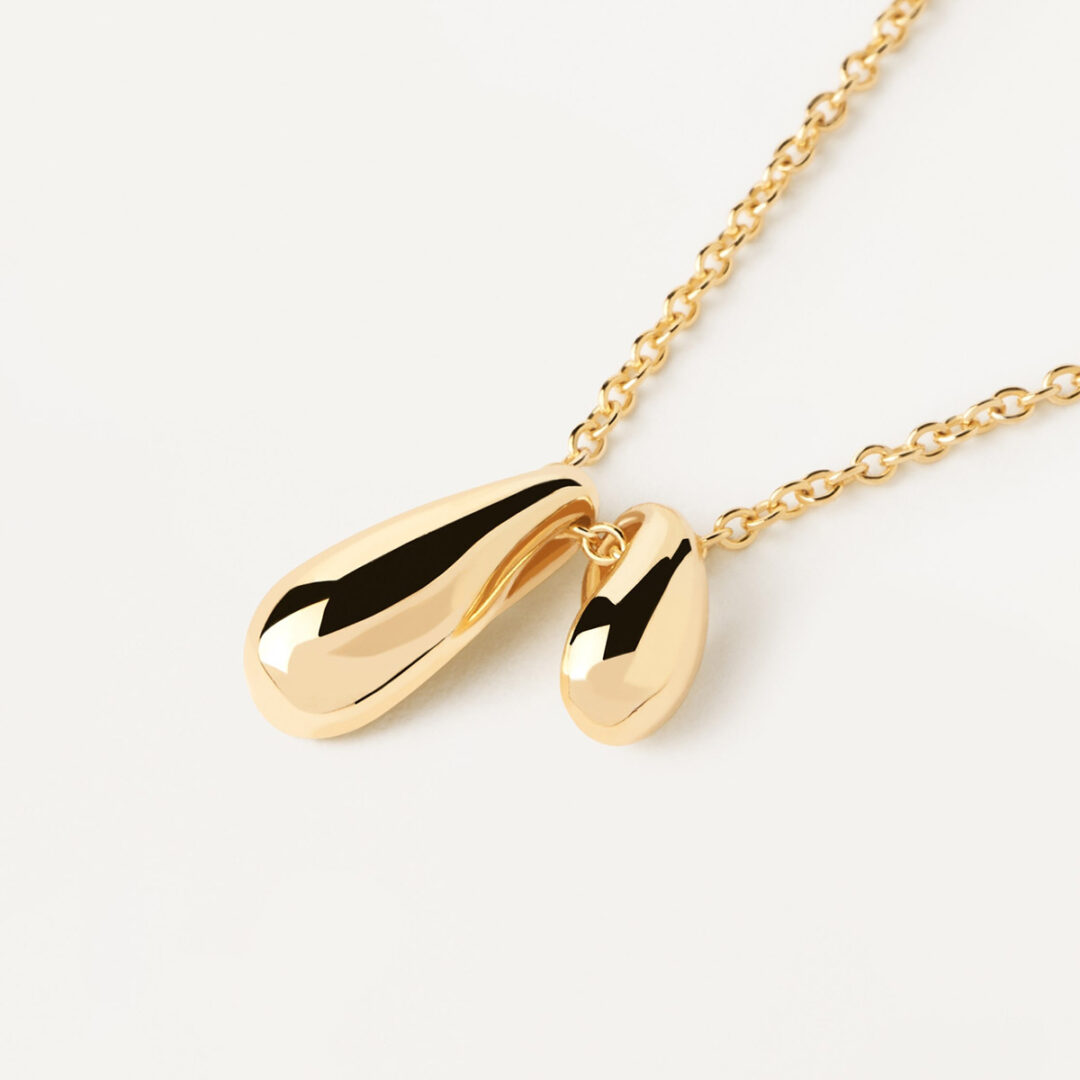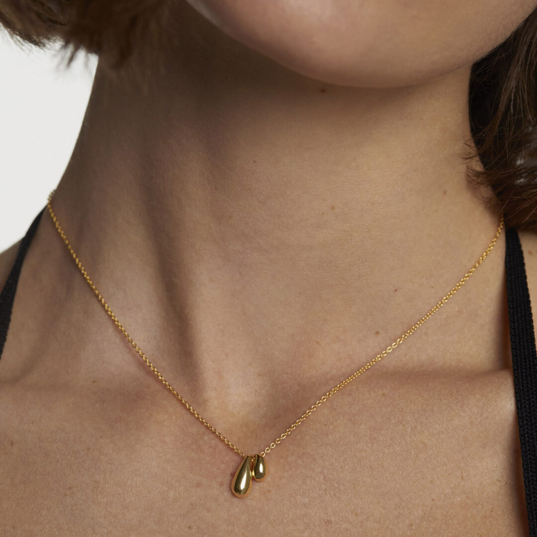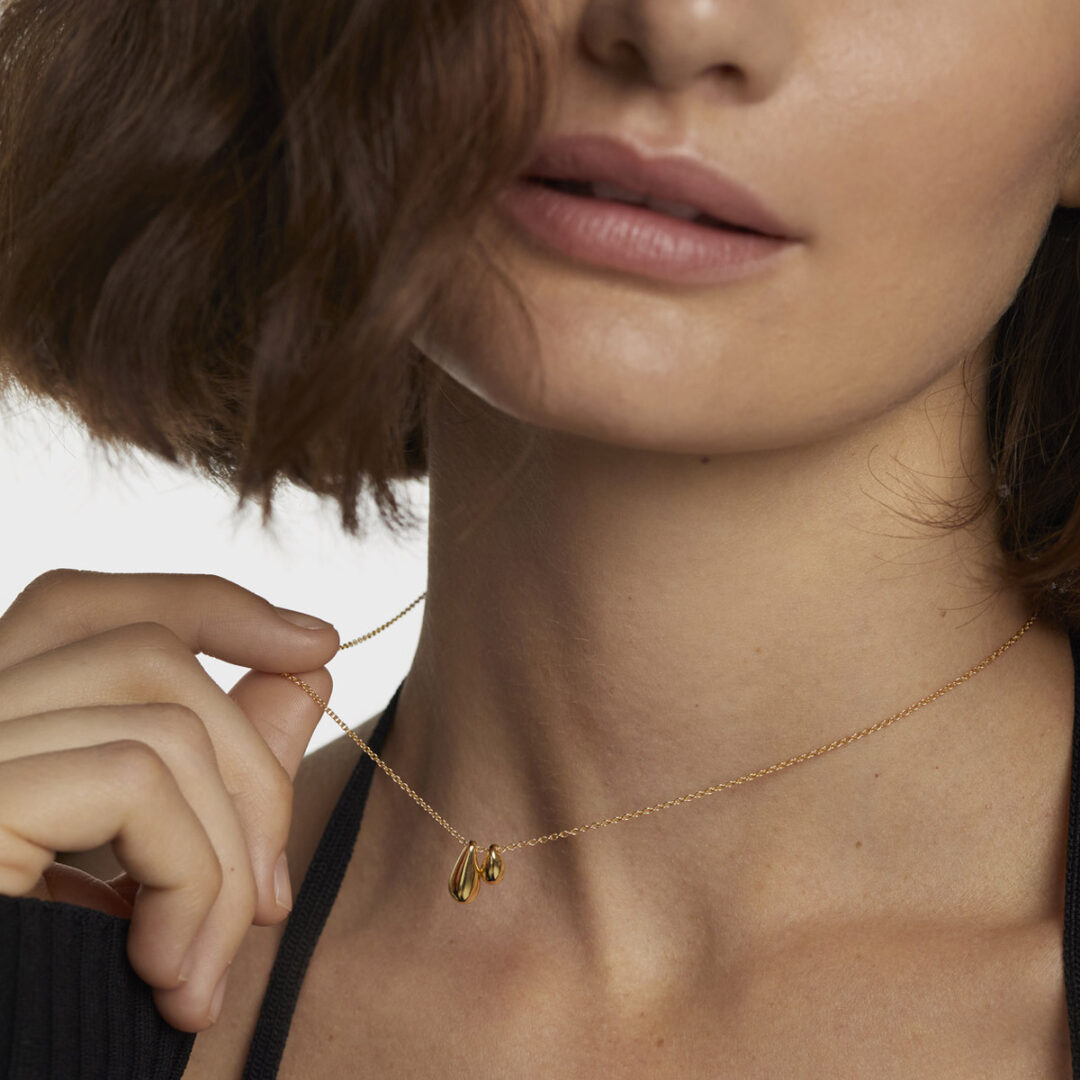 The Sugar Necklace is made in 925 silver with 18K gold-plated and two drop motivs in different sizes, that you can move around the chain.
