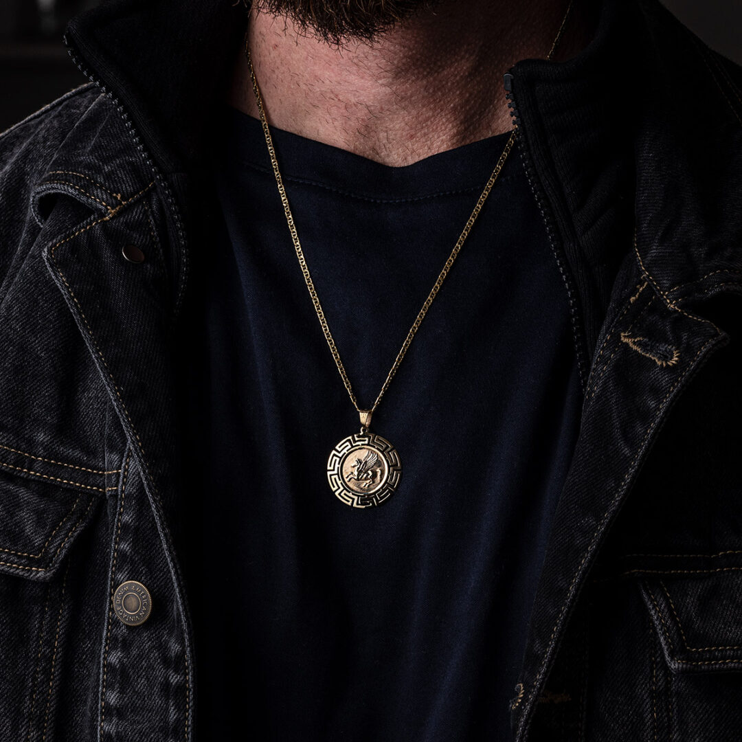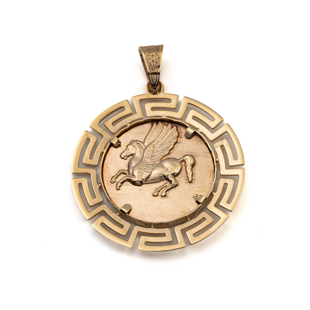 Pegasus Coin Pendant Meander Bezel 14K Gold