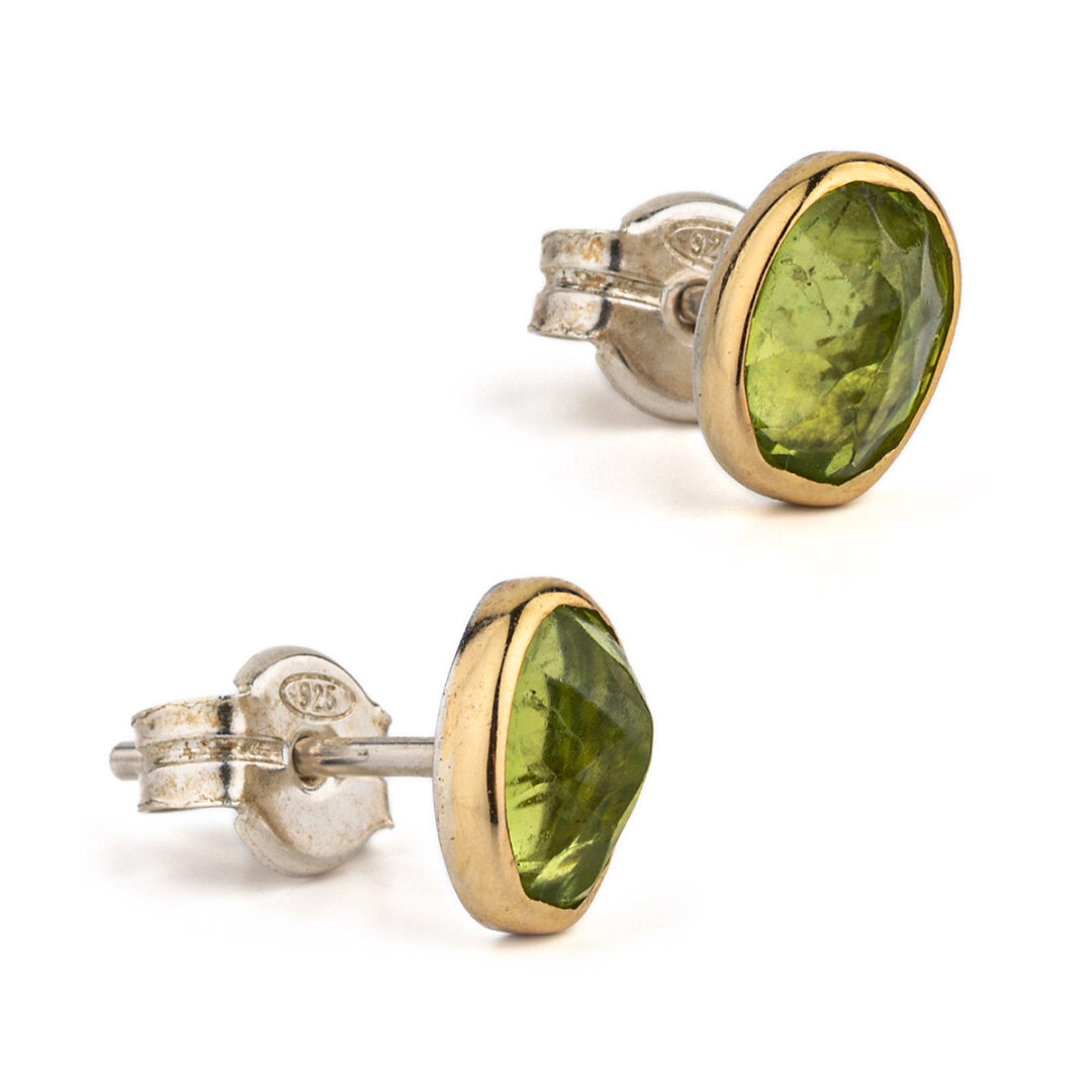 Peridot Stud Earrings – 18K Gold and Sterling Silver