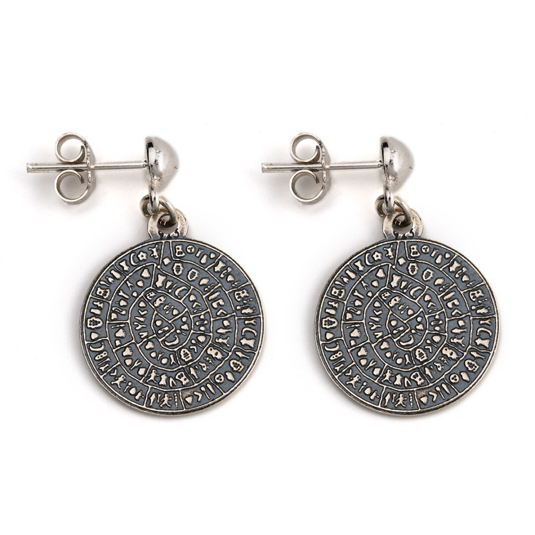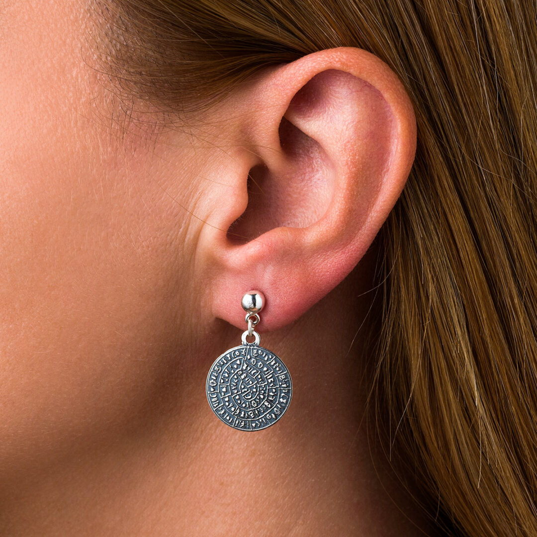 Phaistos Disc Dangle Earrings – 925 Sterling Silver