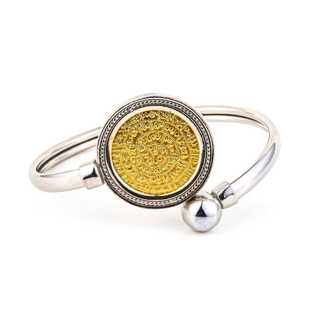 Phaistos Disc Hinge Bracelet – 925 Sterling Silver and Gold Plated