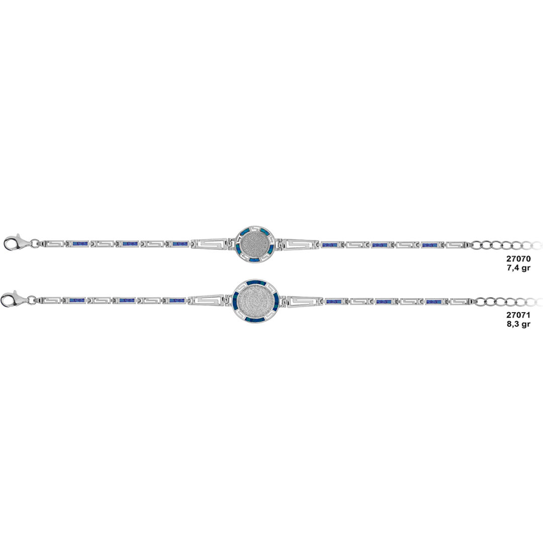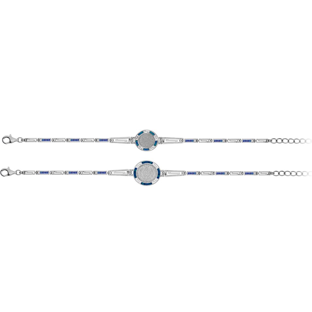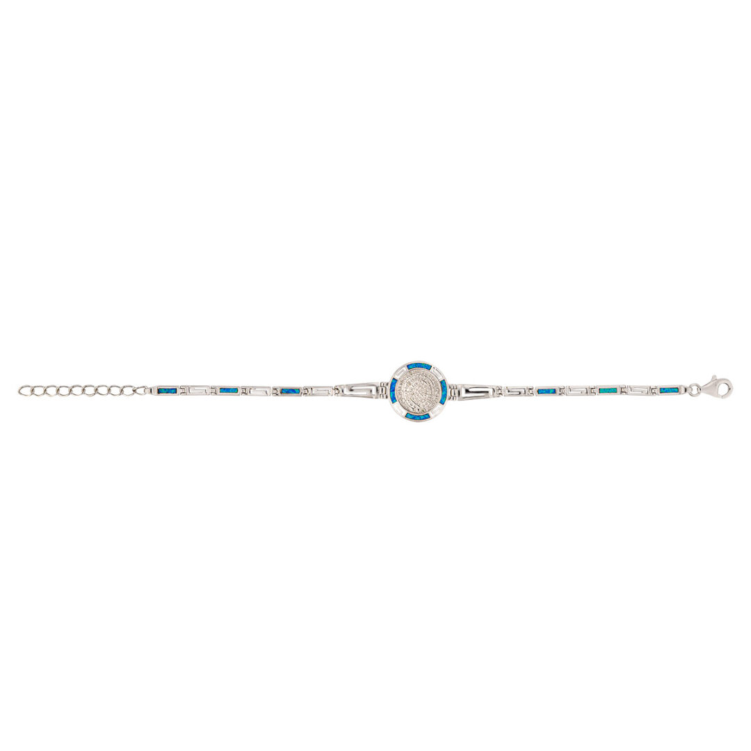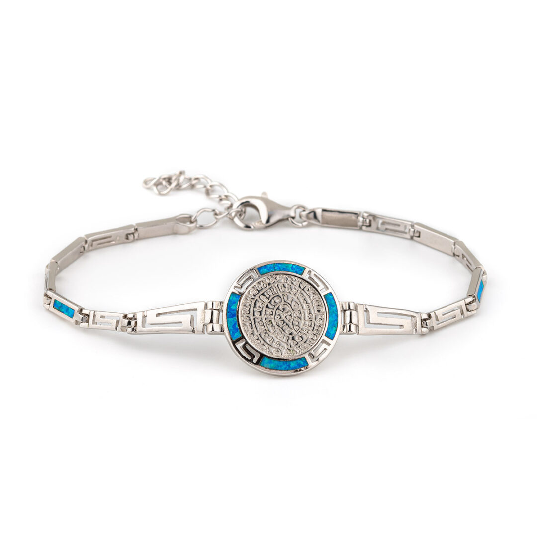 Phaistos Disc Link Bracelet with Meander – 925 Sterling Silver with Blue Opal