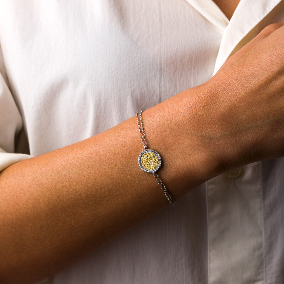 Phaistos Disc Link Zircon Bracelet – 925 Sterling Silver