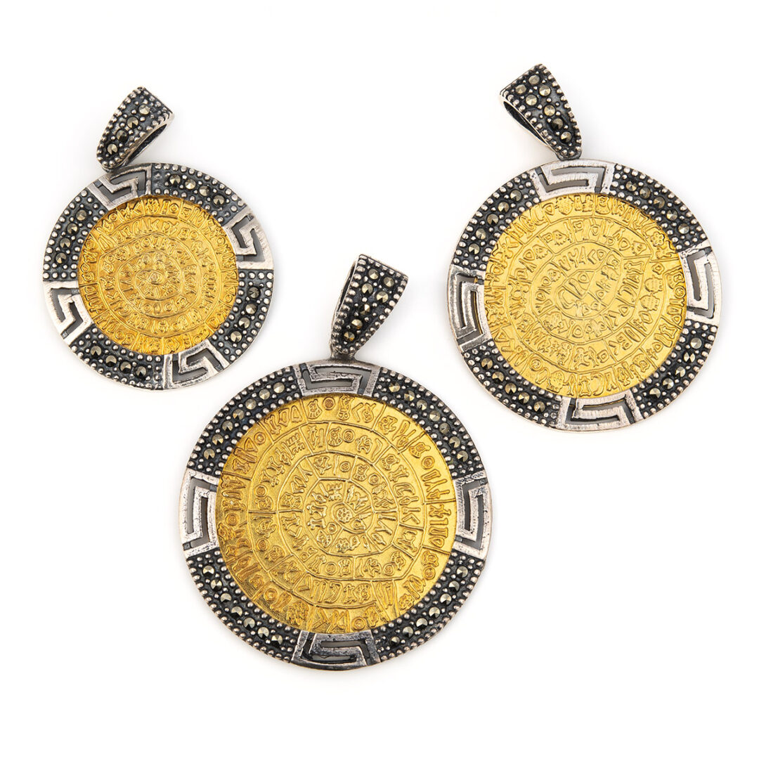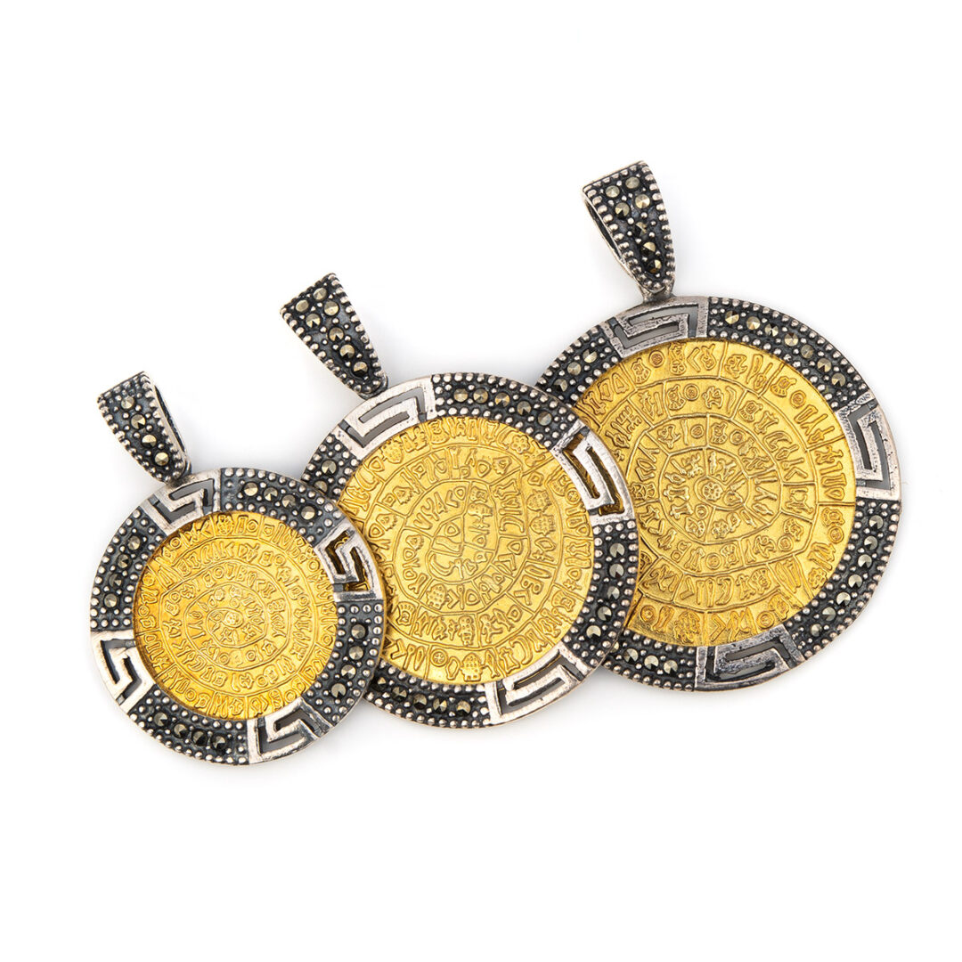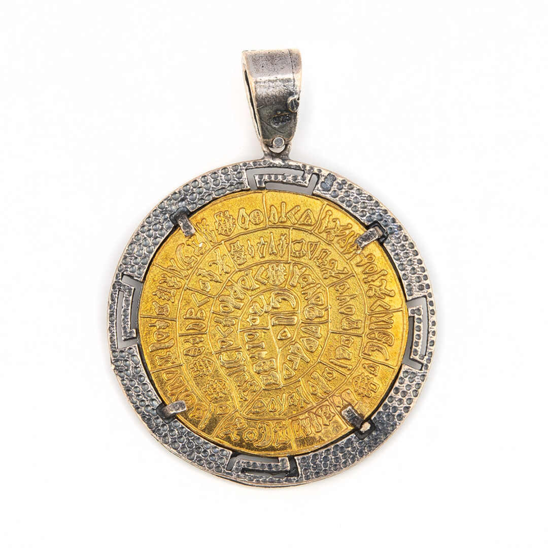 Phaistos Disc Pendant in sterling silver and gold plated.