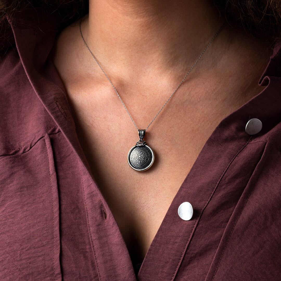 The chain shown is our Sterling Silver Cable Chain – Length 45 cm (not included).