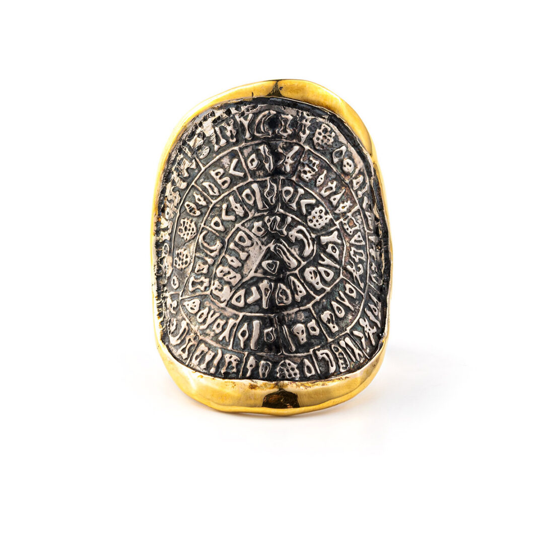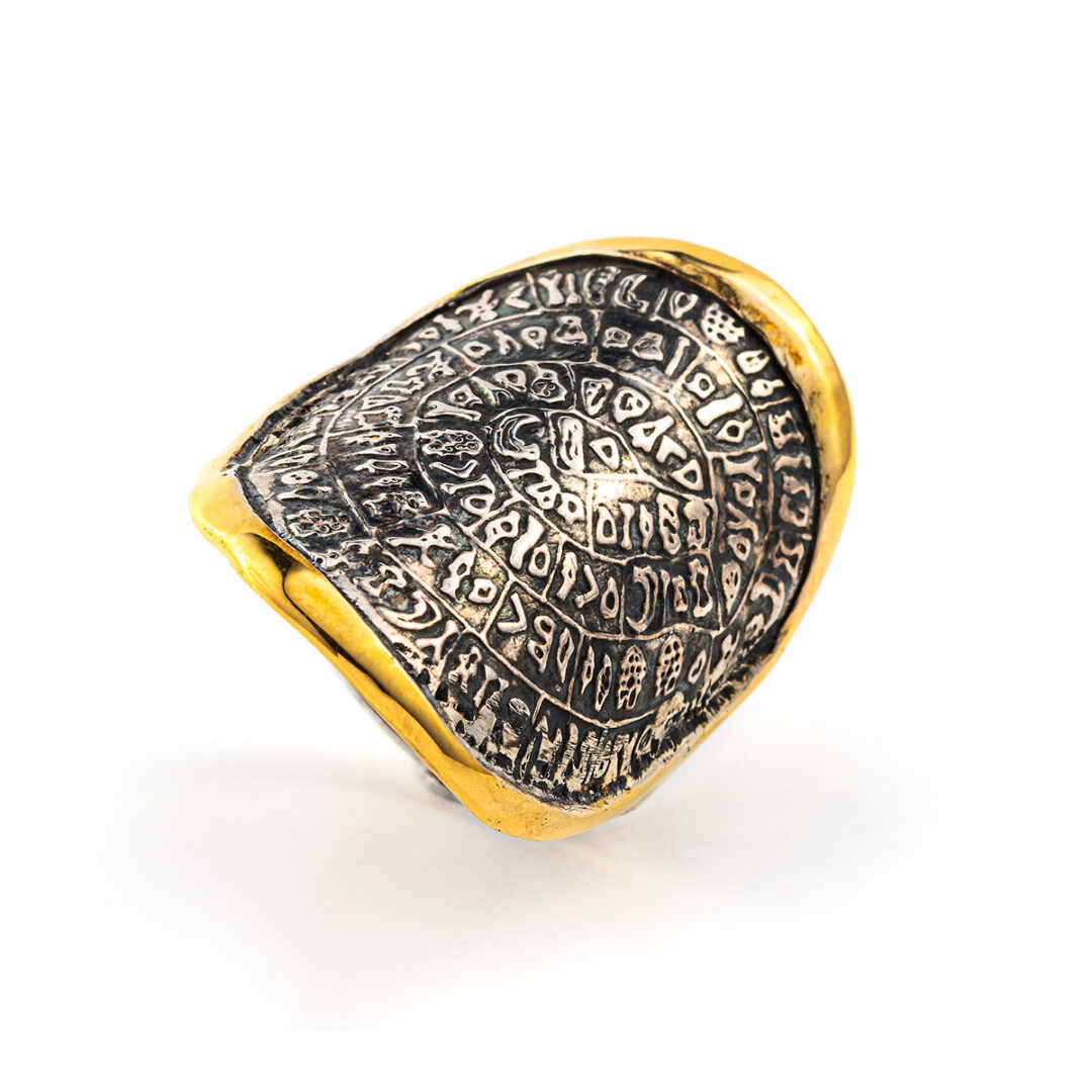 Phaistos Disc Ring – 14K Gold and 925 Sterling Silver