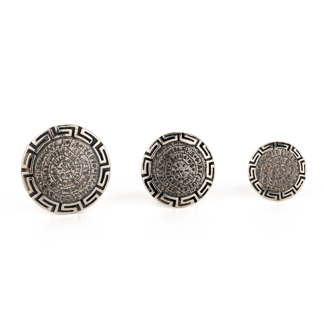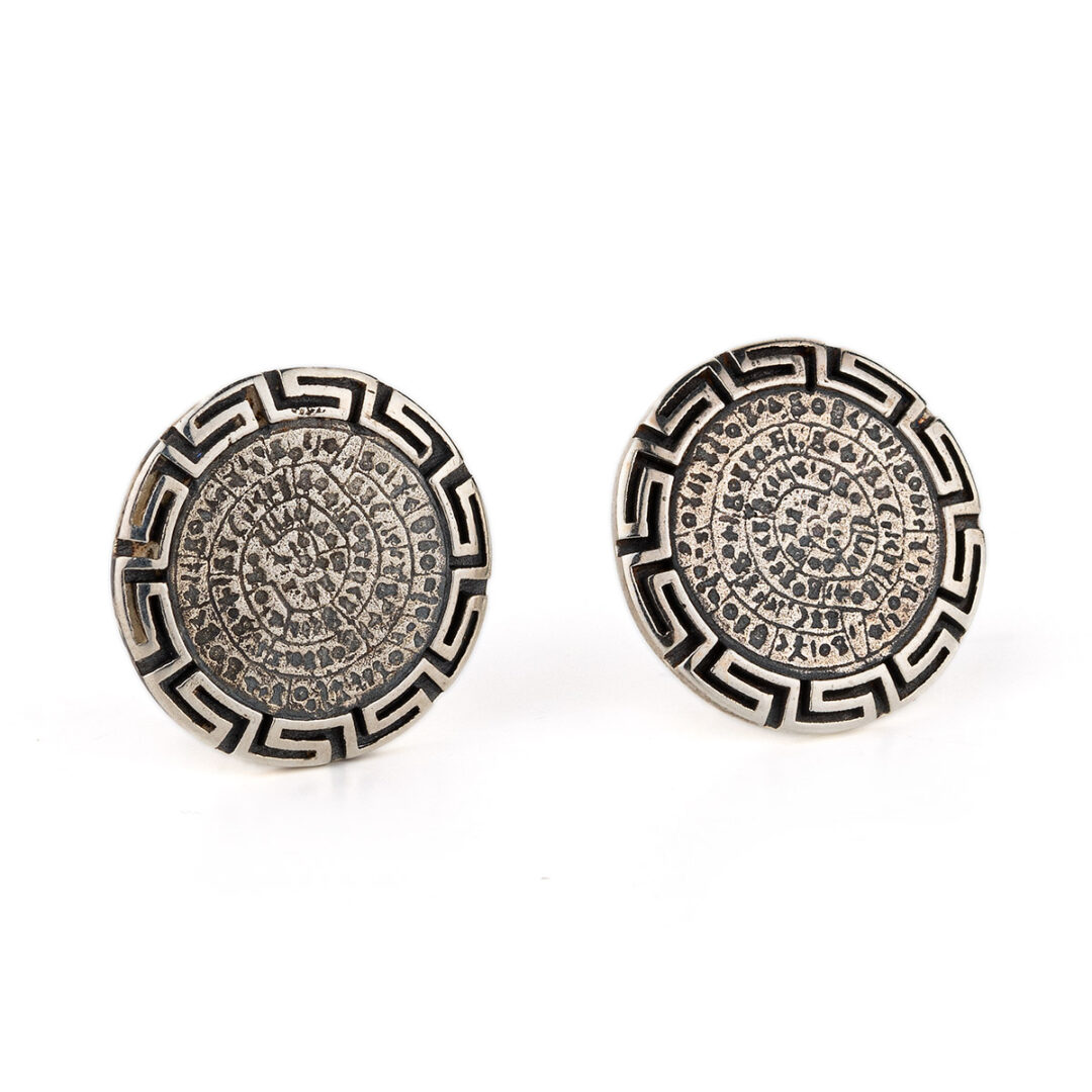 The Phaistos Disc is a disk of fired clay from the Minoan palace of Phaistos on the island of Crete. Now, the island of Crete is part of modern Greece. The disc was discovered in 1908 by the Italian archaeologist Luigi Pernier in the Minoan palace-site of Phaistos. While it is not clear that it is a script, most attempted decipherments assume that it is; most additionally assume a syllabary, others an alphabet or logography or a calendar, making it one of the most famous mysteries of archaeology. The disk is about 15 cm in diameter and covered on both sides with a spiral of stamped symbols. The disc features 241 tokens, comprising 45 distinct signs, which were apparently made by pressing hieroglyphic “seals” into a disc of soft clay, in a clockwise sequence spiraling toward the center of the disk. This unique object is now on display at the archaeological museum of Heraklion.