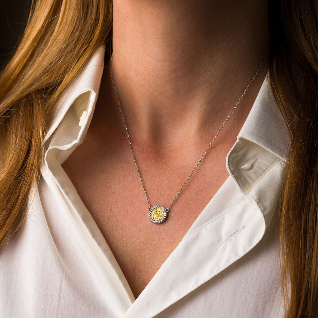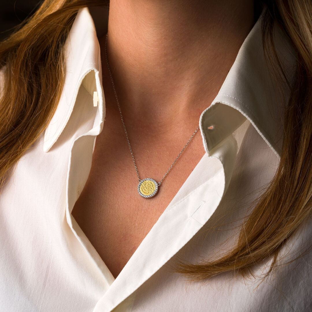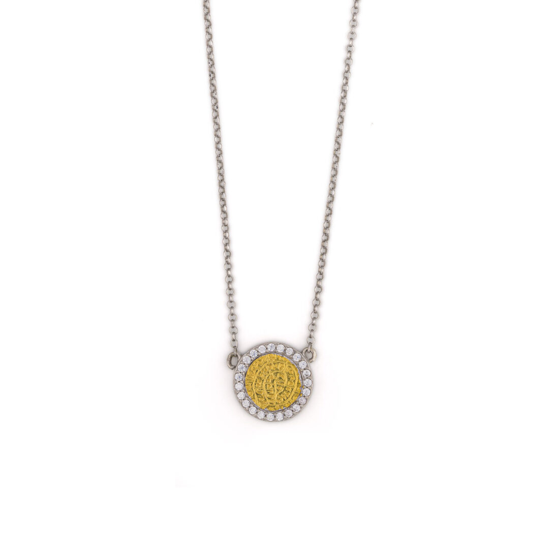 Phaistos Disc Zircon Necklace – 925 Sterling Silver Gold Plated
