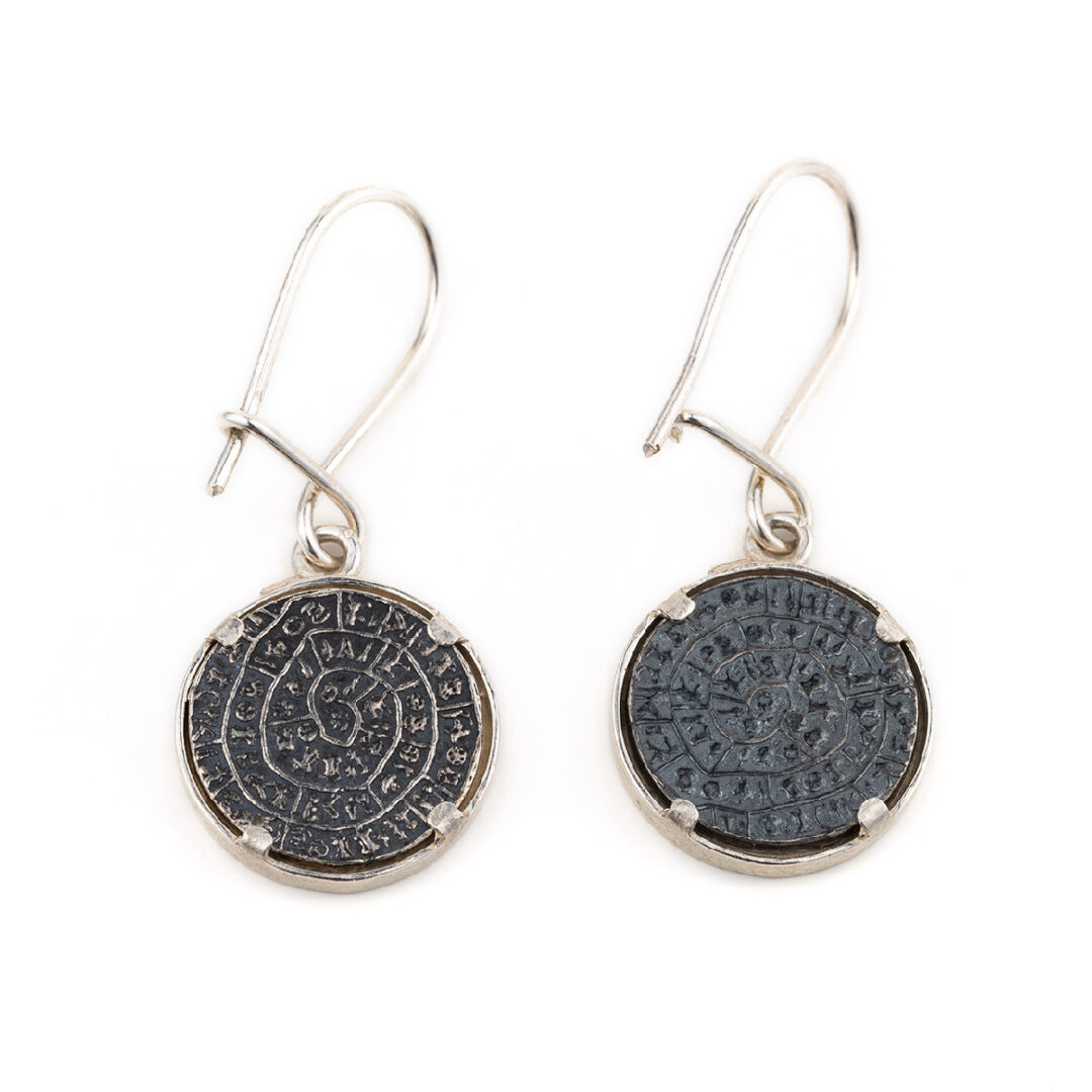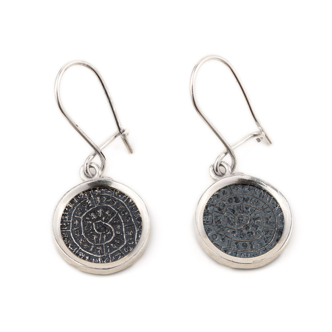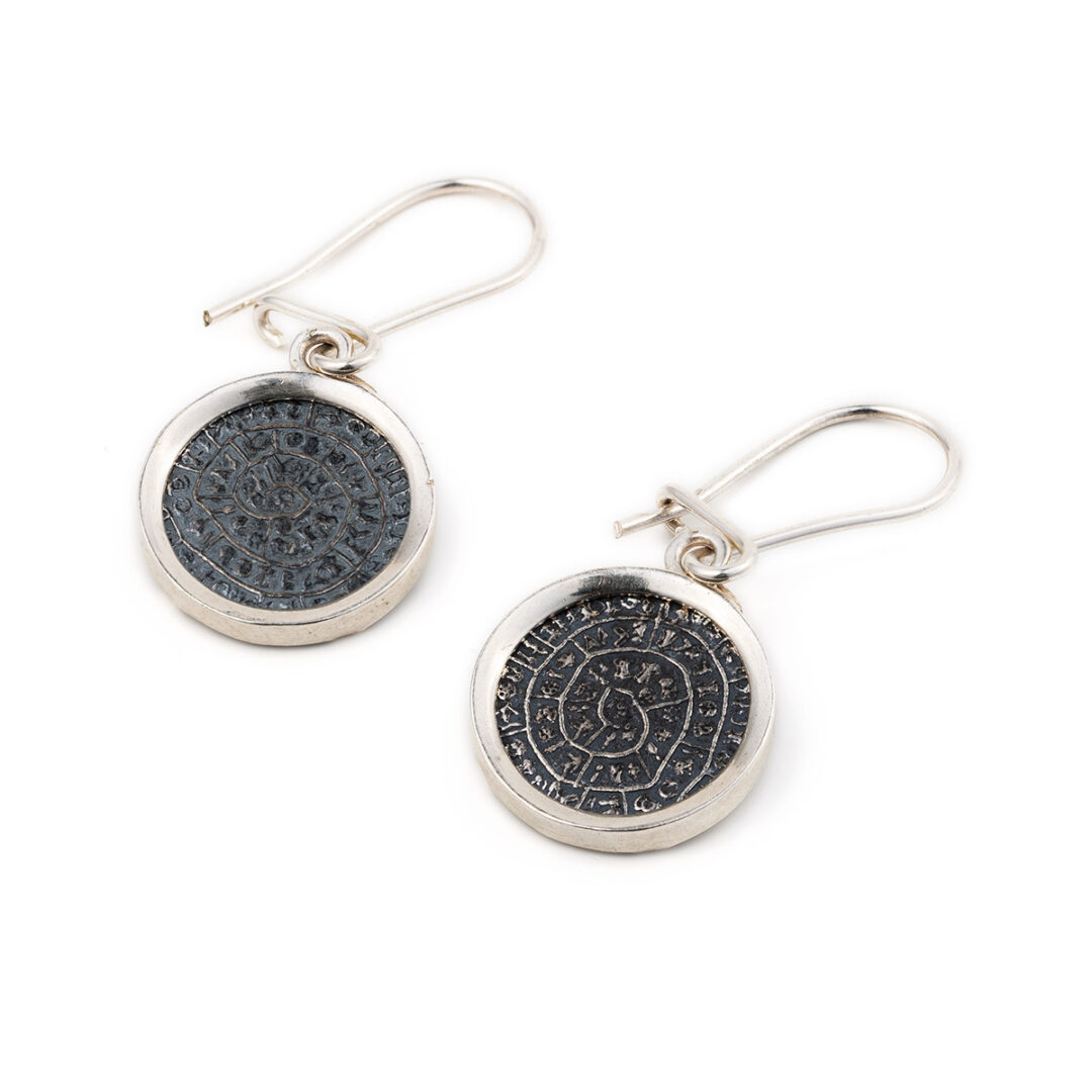 Phaistos Disk Dangle Earrings – 925 Sterling Silver