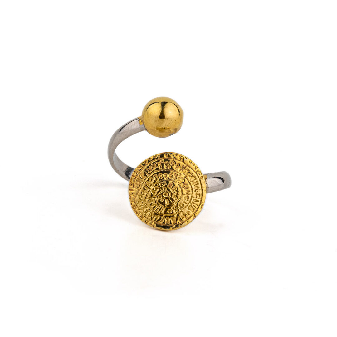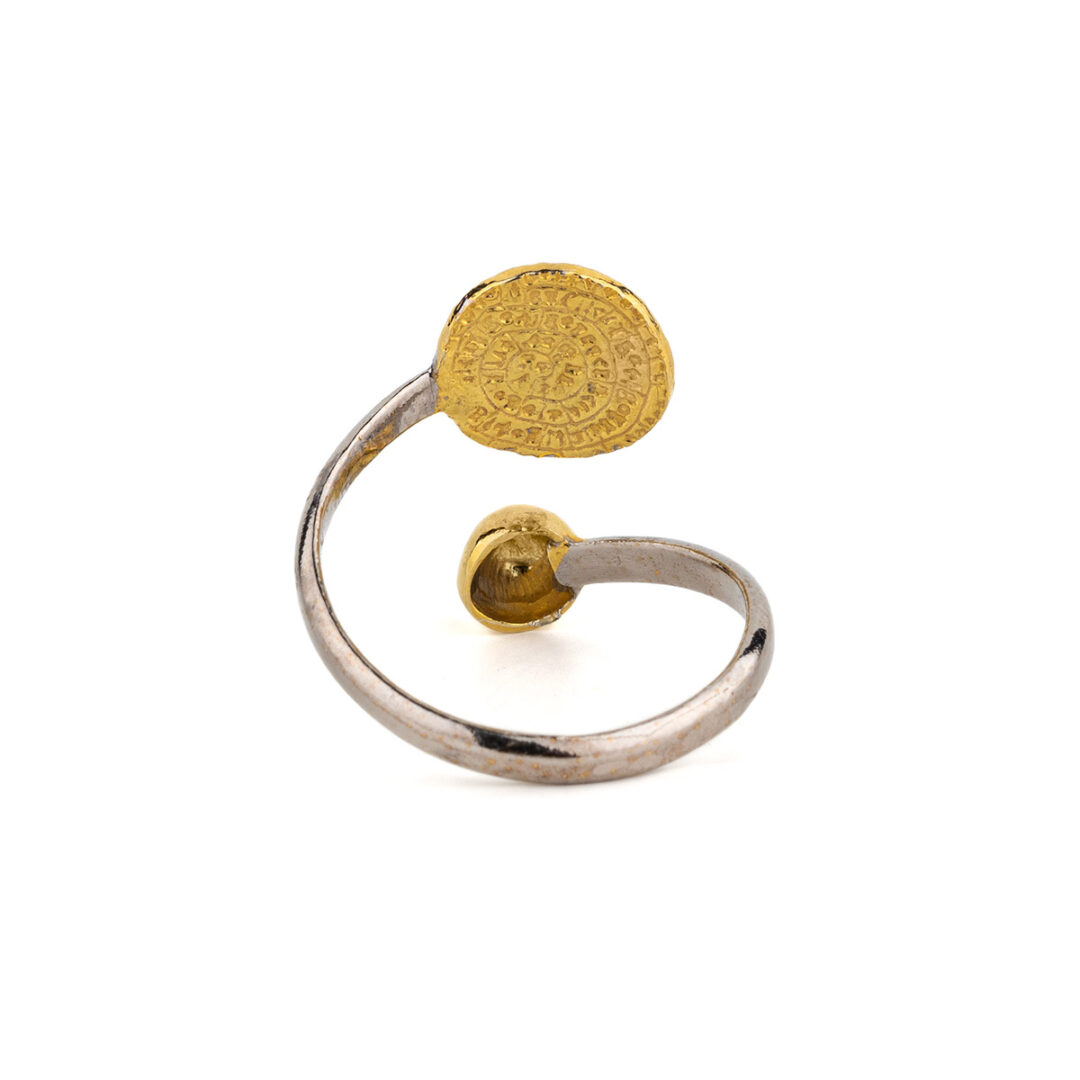 [vc_row][vc_column][vc_column_text css=”” woodmart_inline=”no” text_larger=”no”]Phaistos Ring – Sterling Silver and Gold Plated