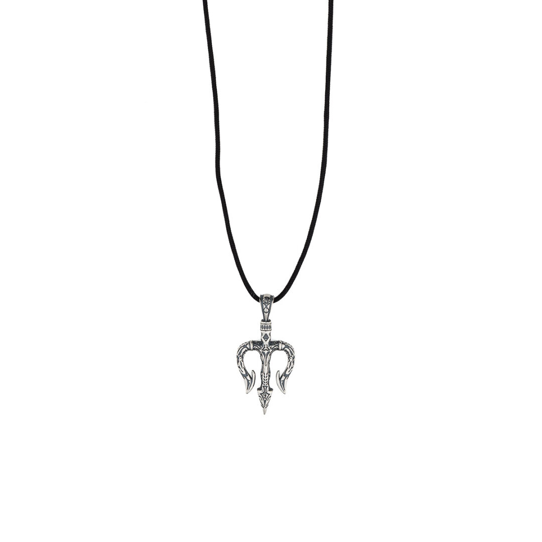 Poseidon’s Trident Cord Necklace in 925 Sterling Silver