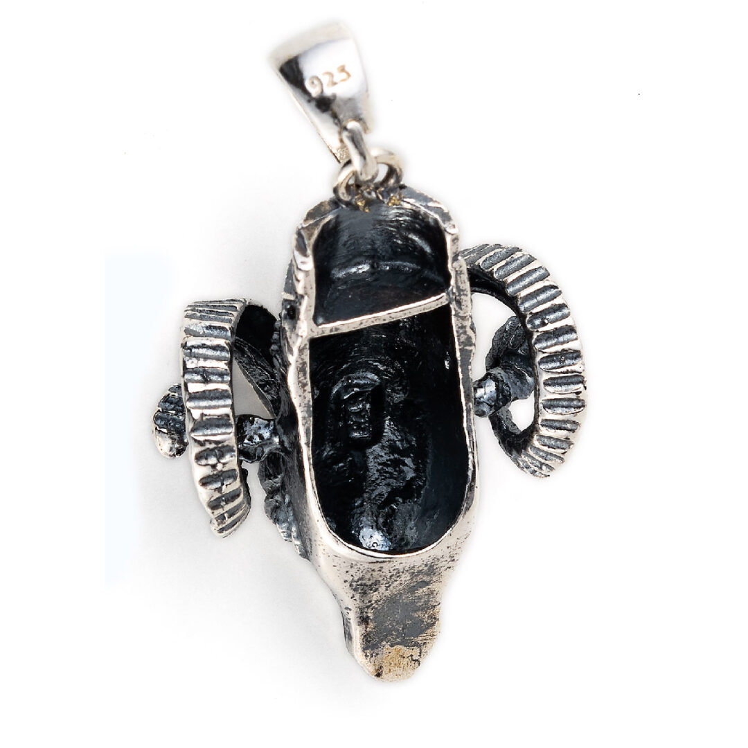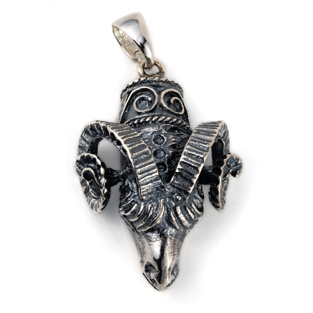 Ram Head Pendant in sterling silver. In ancient Greek mythology, the ram was symbol of virility and fertility, power and leadership.