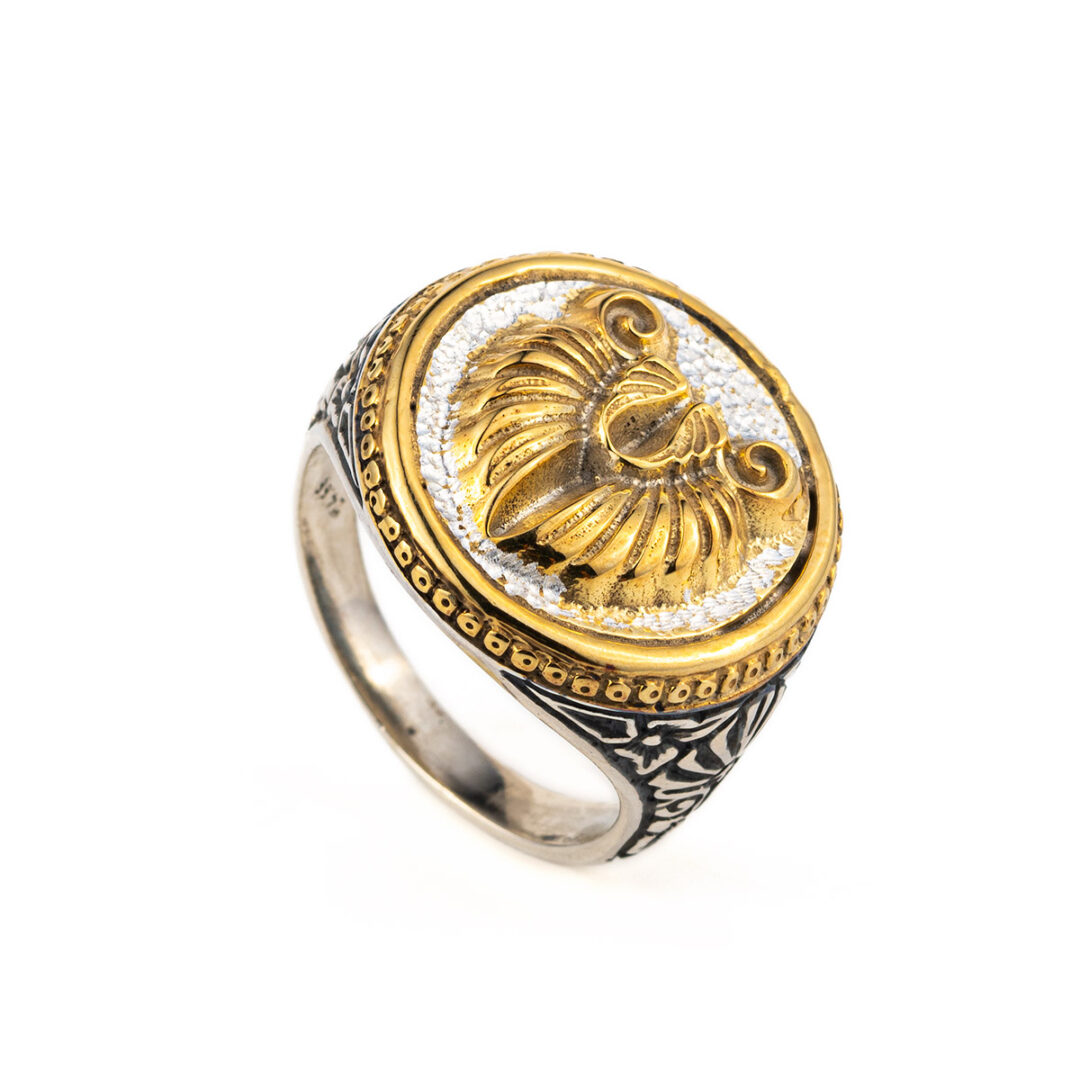 Ram’s Head Coin Ring in Sterling Silver and Gold Plated