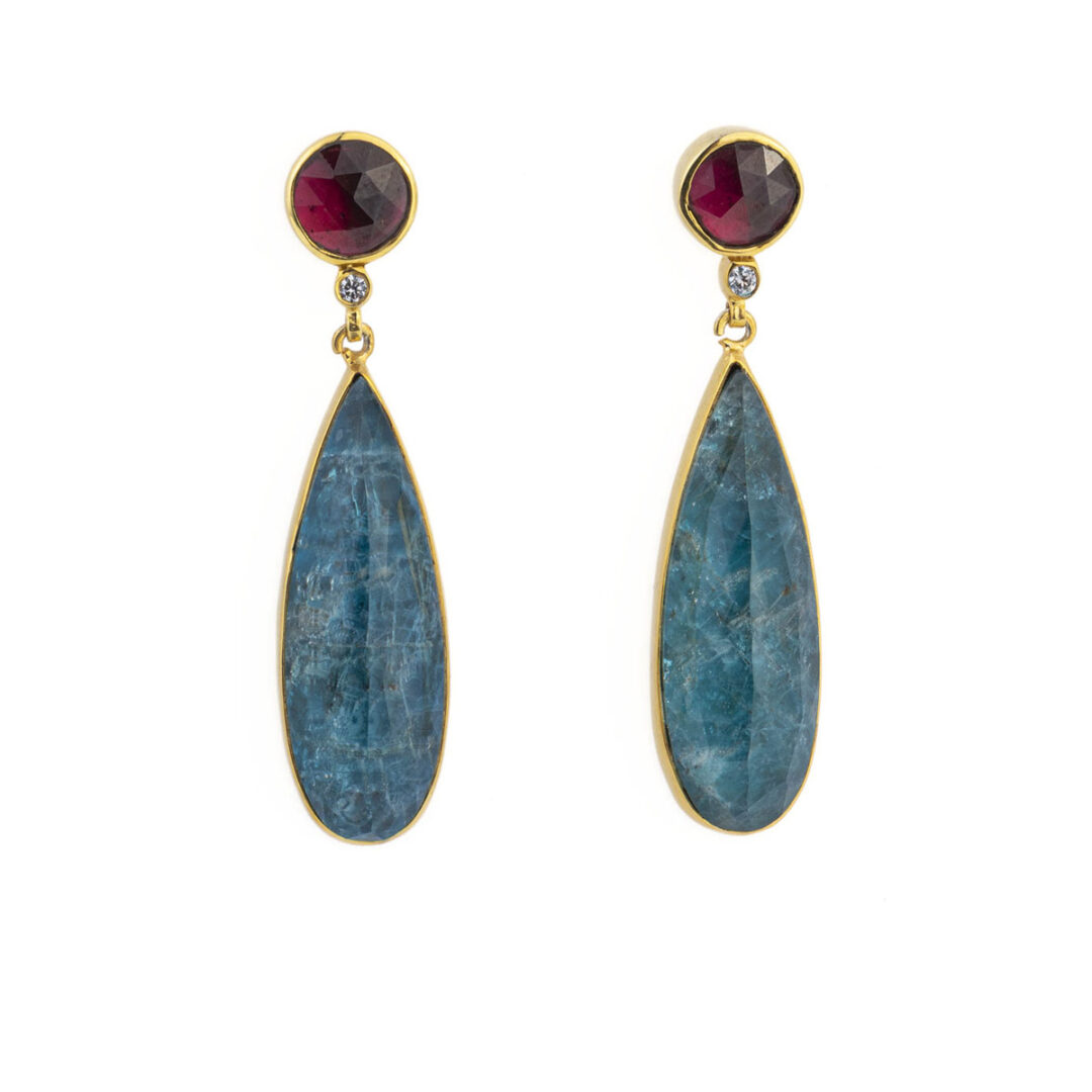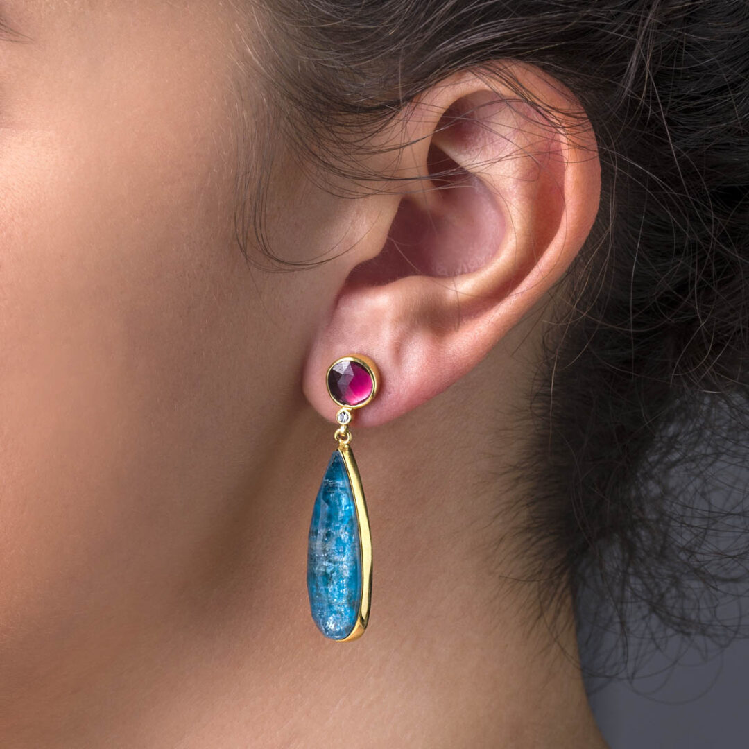 A beautiful pair of earrings decorated with Rhodolite and Apatite stones.