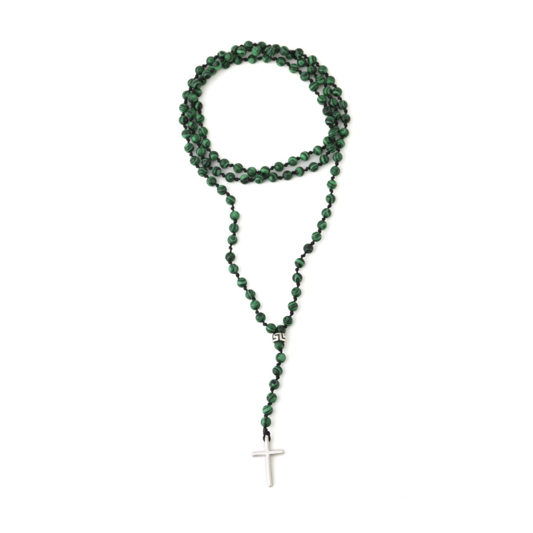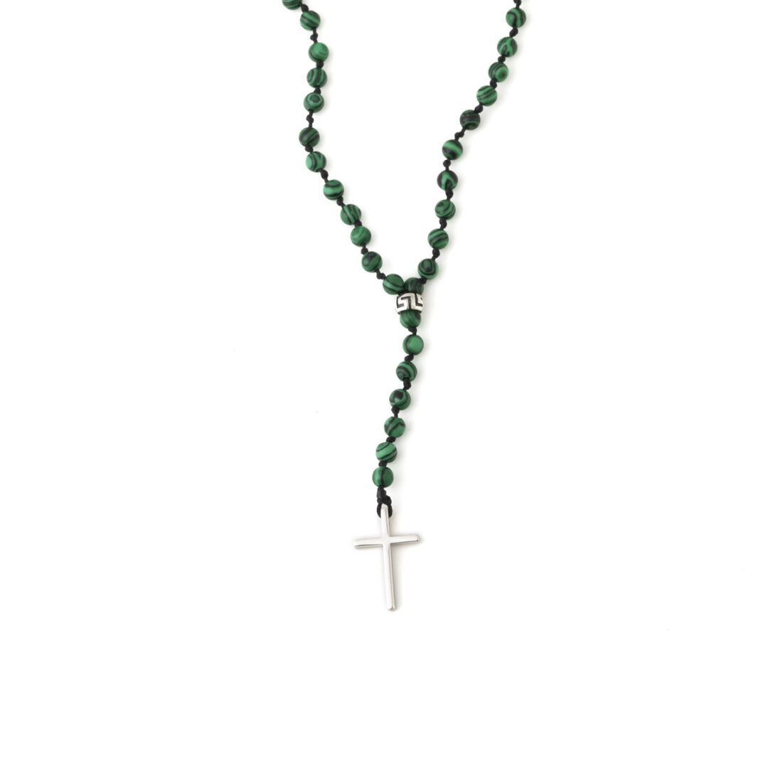 Rosary Necklace with Malachite Beads – 925 Sterling Silver