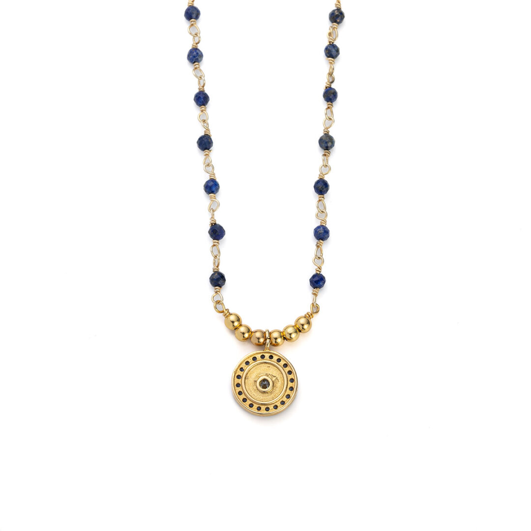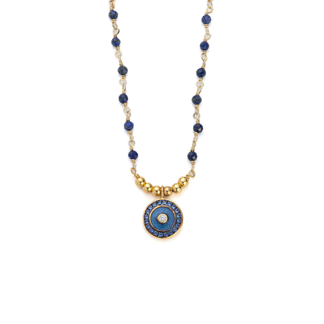 Rosary Stone Necklace with Beads and Enamel Evil Eye