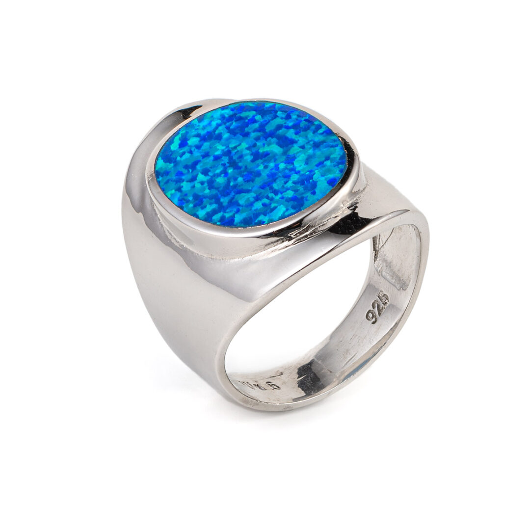 Round Blue Opal Ring – 925 Sterling Silver