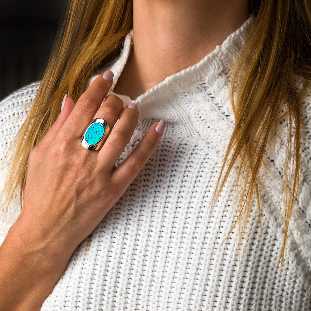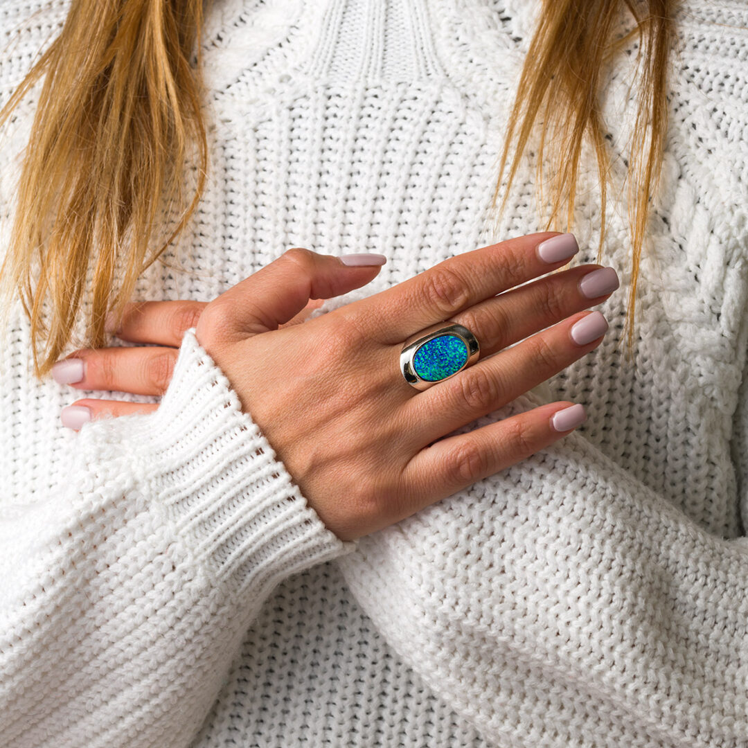 Blue opal ring made of 925 sterling silver.