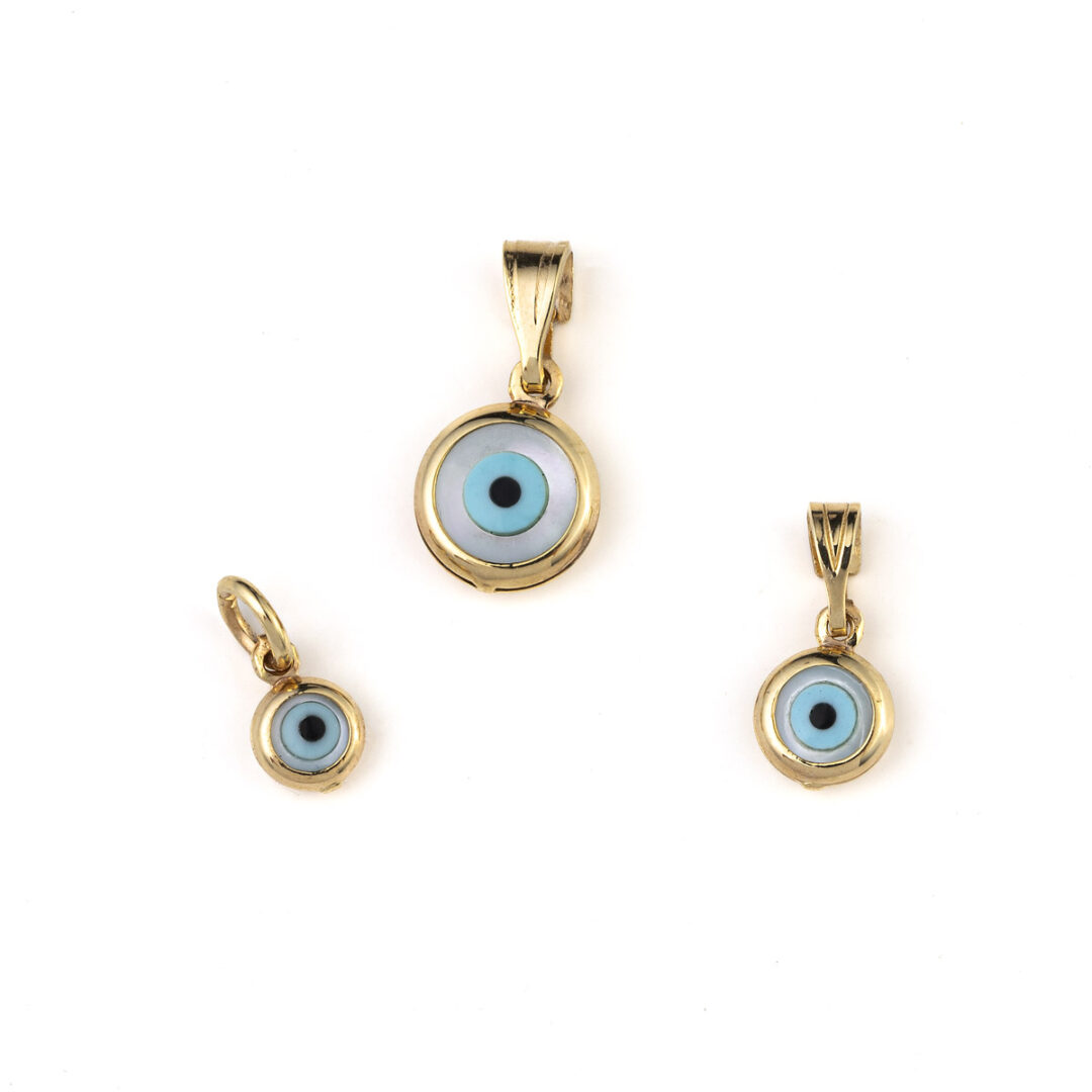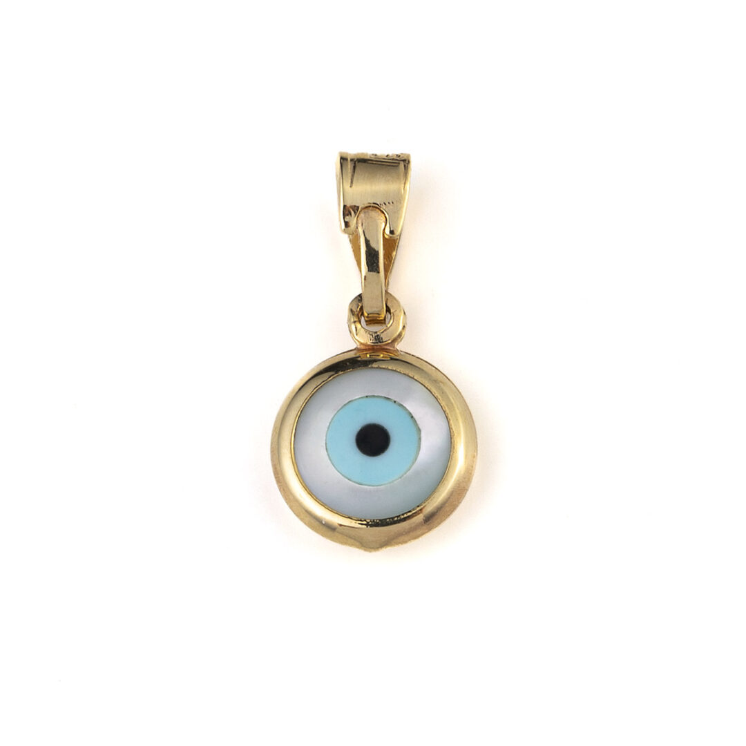 A pendant representing the evil eye protective symbol.