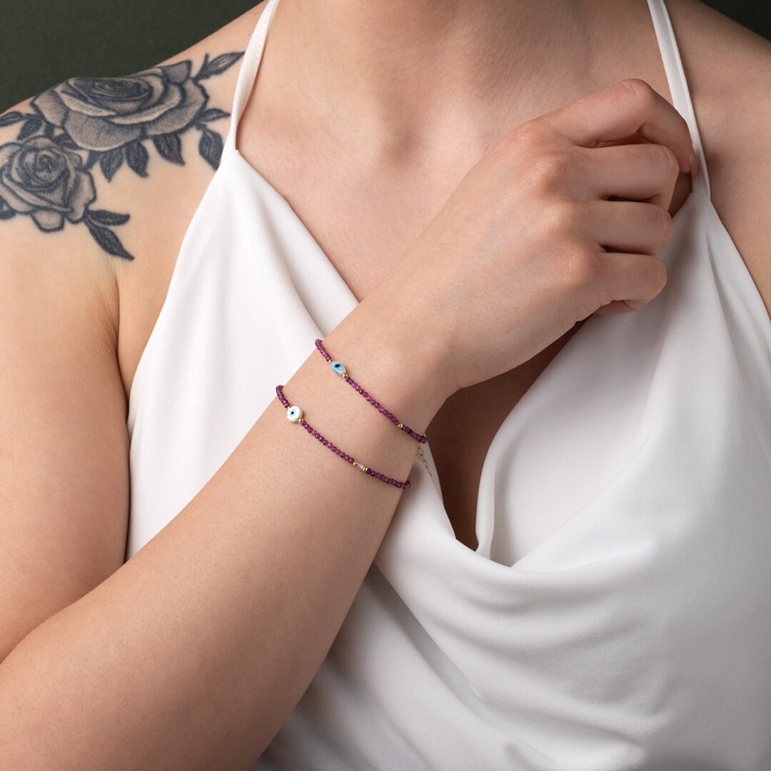 The symbol and superstition of the evil eye is one of the strongest symbolic images in the world. The earliest known evidence for belief in the evil eye goes back to ancient Greece and Rome. It is supposed to wear off evil to anyone who wears it and various cultures believe in that, however in Greece it’s blue because at that time blue eyes were not so common and were thought to give the evil eye, so the blue is like a mirror to them. Nowadays it’s widely known and has become a trend.