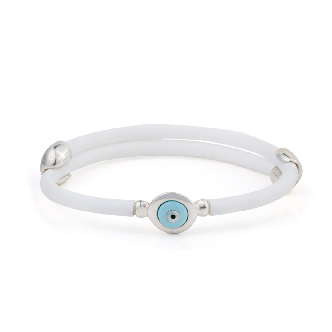 Round Eye White Caoutchouc Bracelet – Sterling Silver