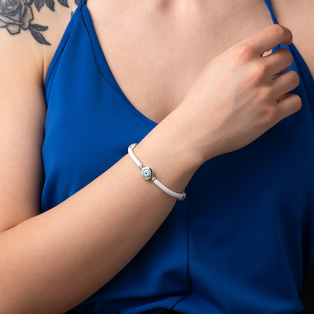 Round Eye White Caoutchouc Bracelet – Sterling Silver 925