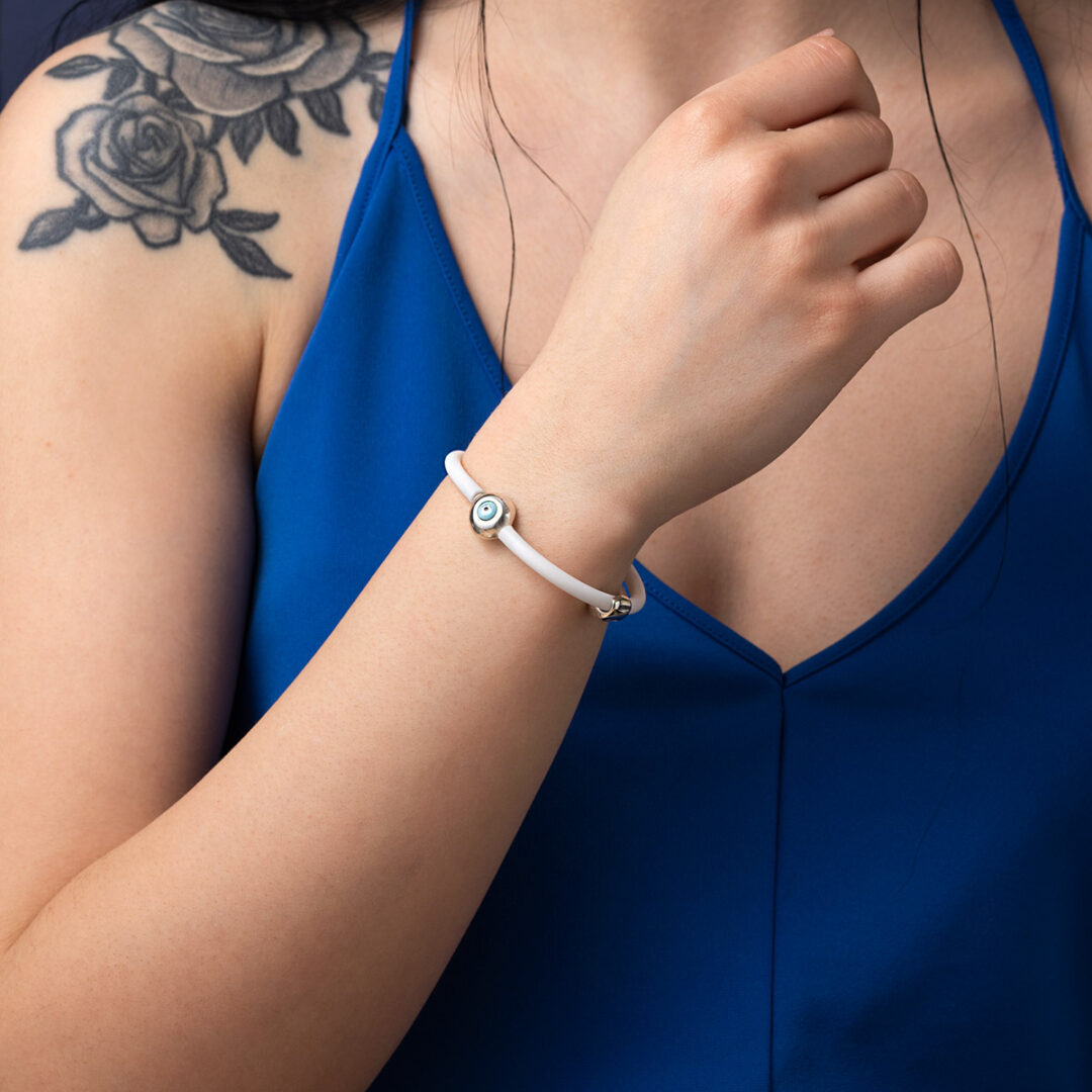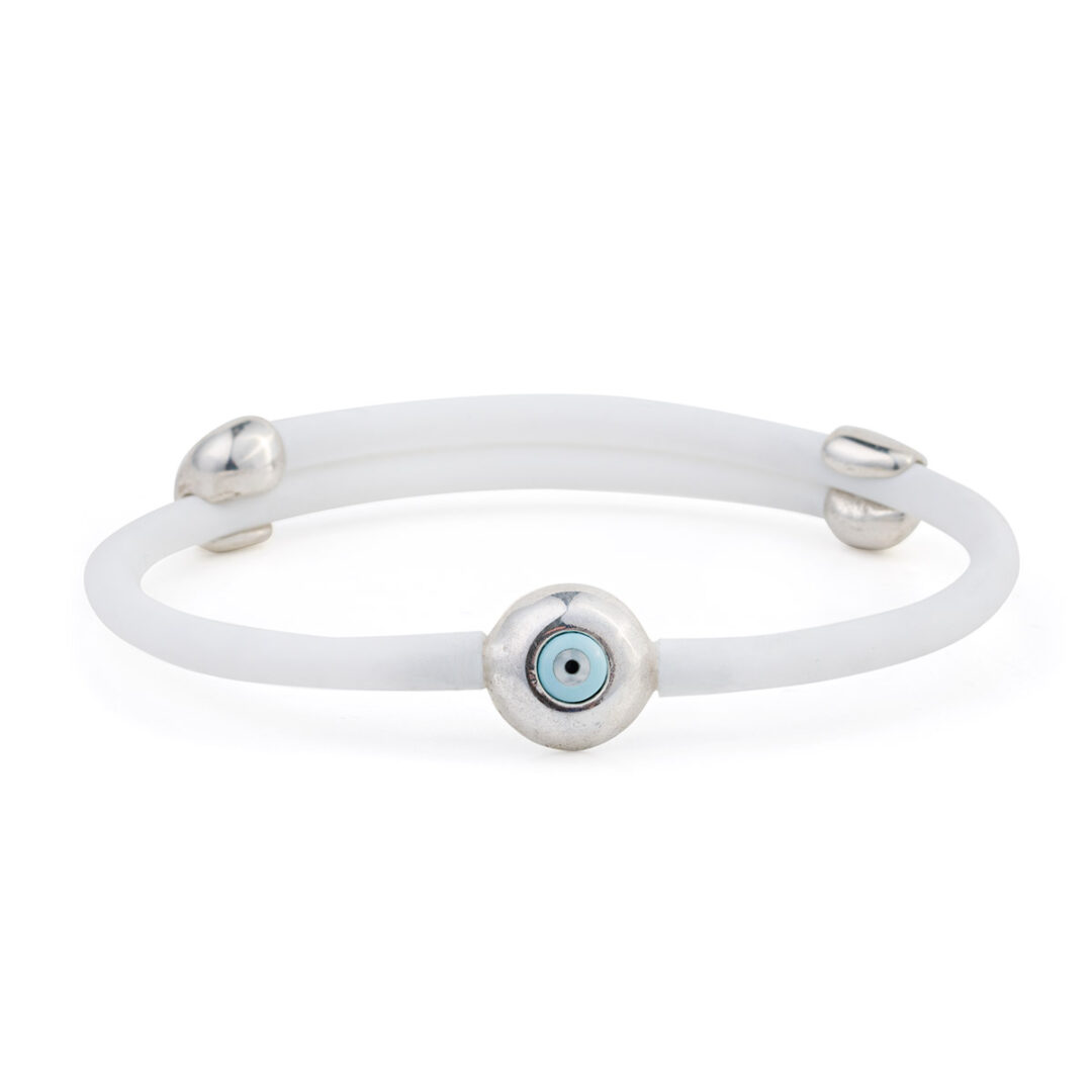 Round Eye White Caoutchouc Bracelet – Sterling Silver