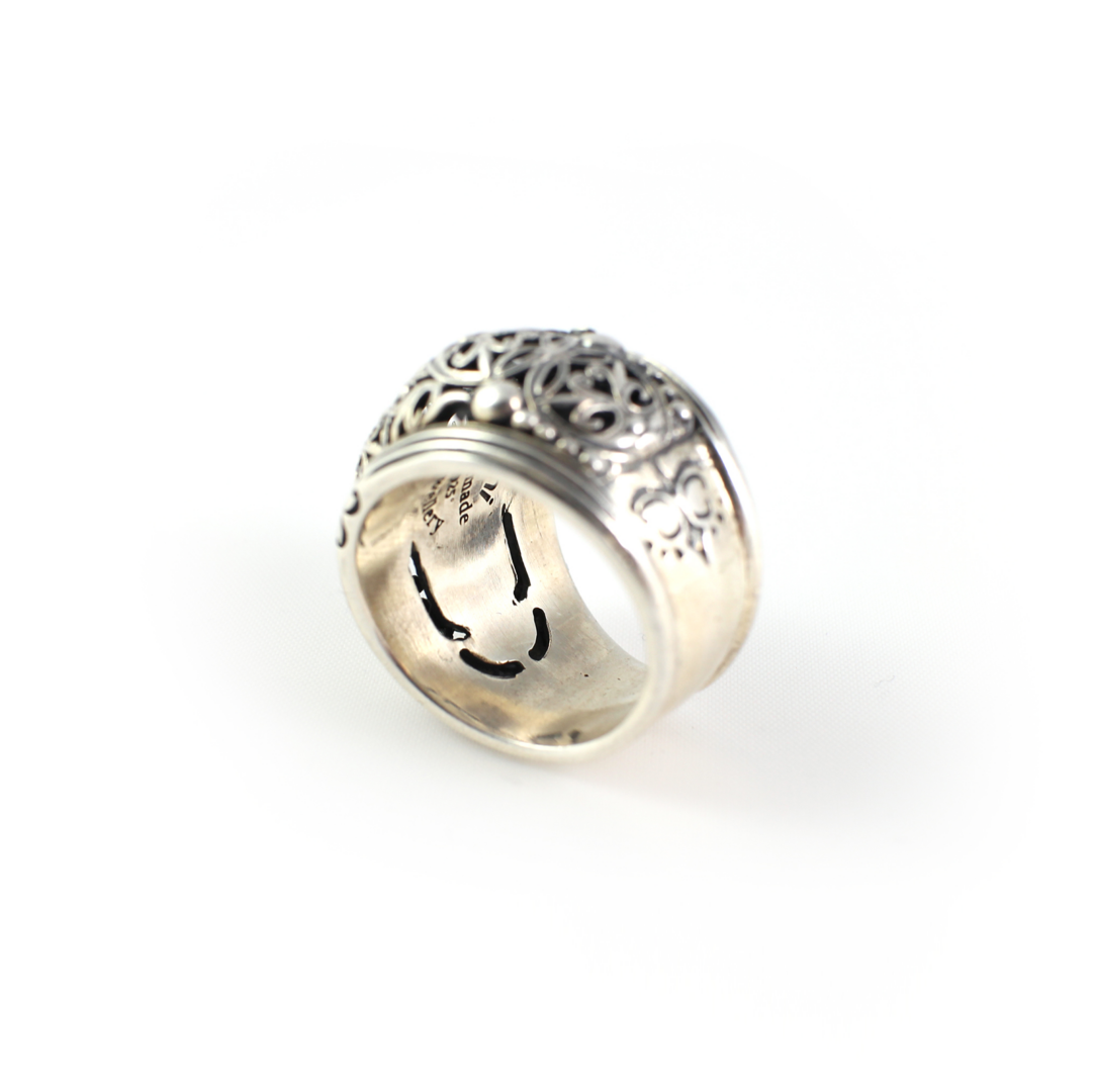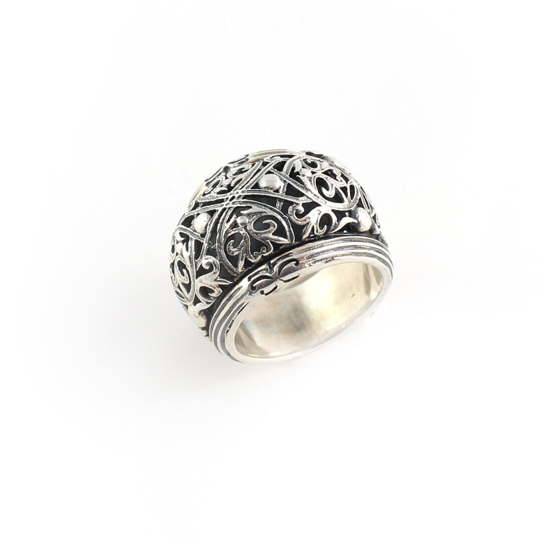 Ring made with the ancient technique of “Granulation” by soldering each silver balls precisely and wrapping silver wire around the ring in proper way give this look.