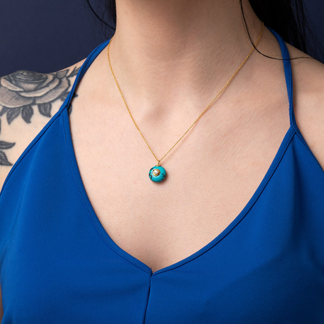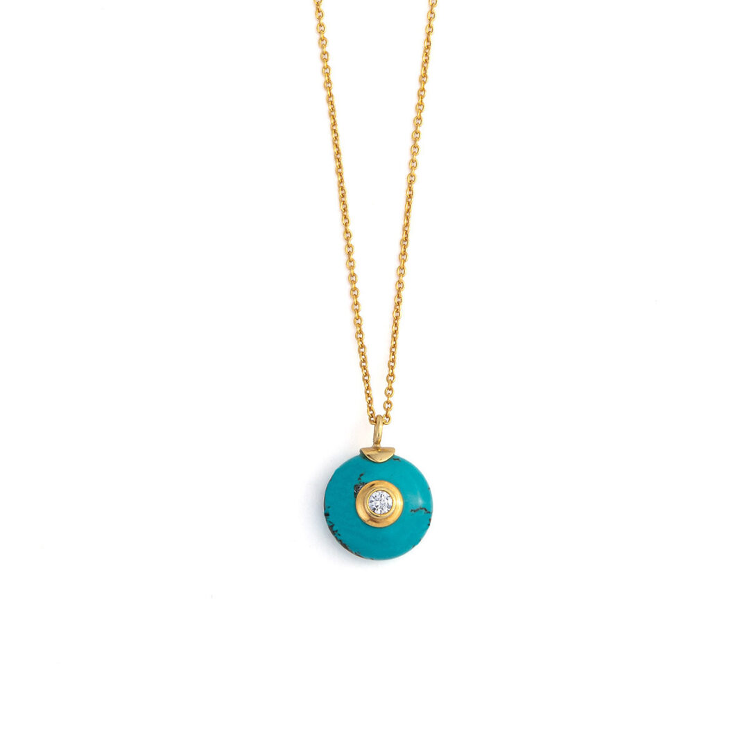 Round Turquoise Eye Necklace – 925 Sterling Silver and Gold Plated