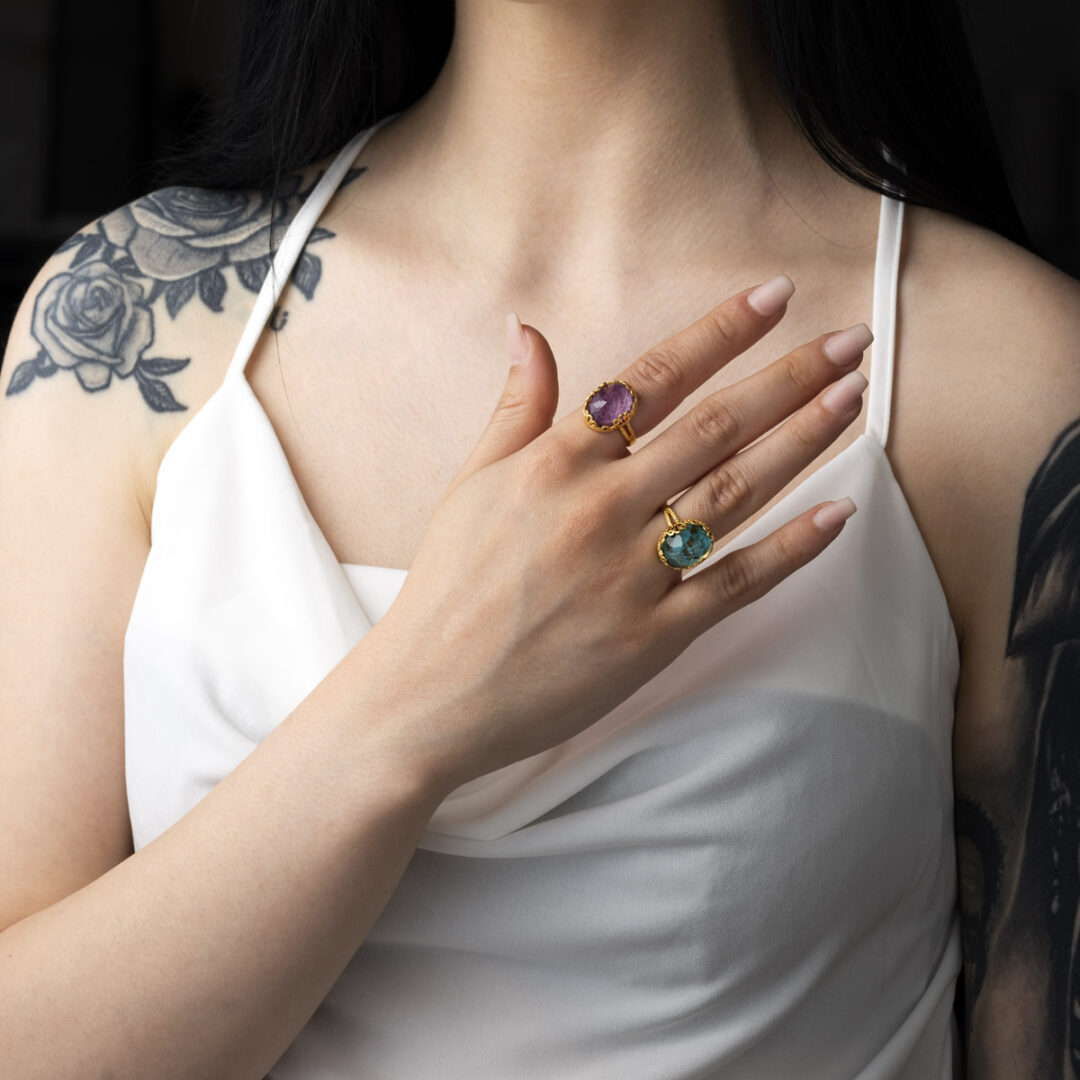 The collection contains jewelry with unique semi-precious stones in beautiful colors.