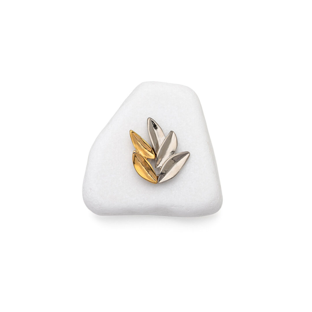 Silver and gold leaves decorative sculpture, beautifully mounted on Thassos marble. The combination of silver and gold evokes luxury, harmony, and timeless beauty, making this piece a perfect accent for any home or office.