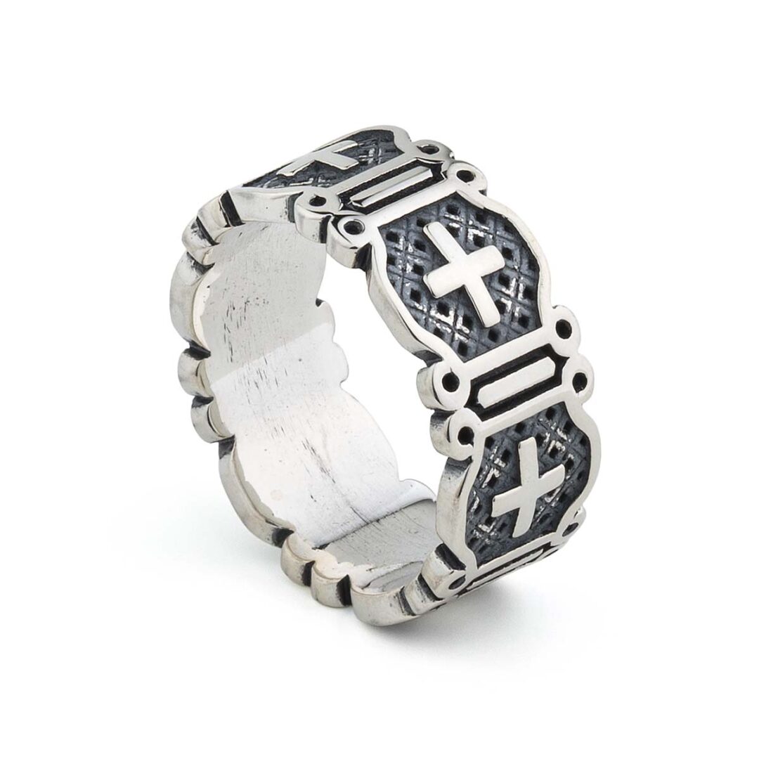 Striking men’s handmade ring featuring a cross design, with an elegant style and a lustrous finish, crafted from oxidized 925° sterling silver.