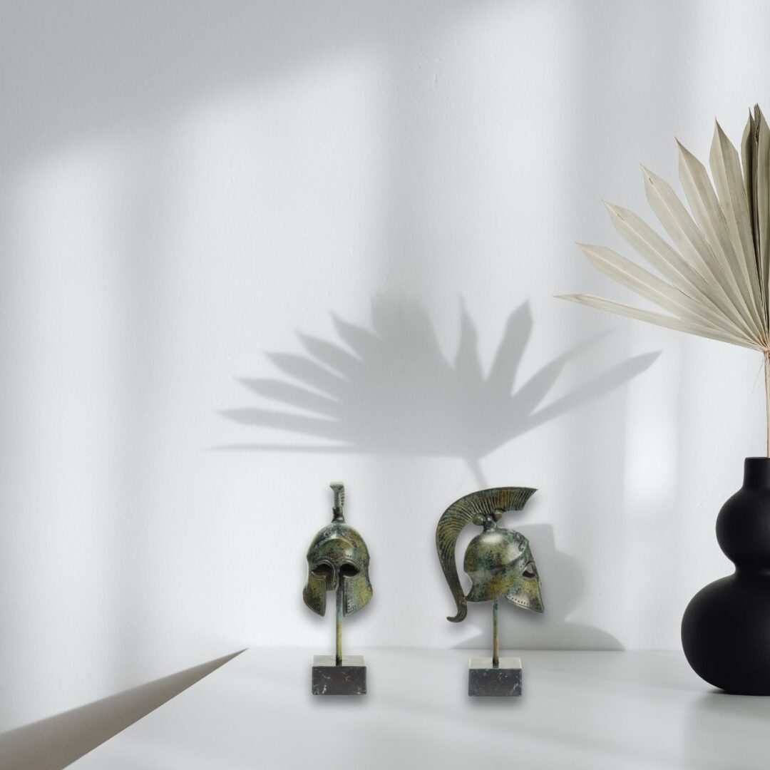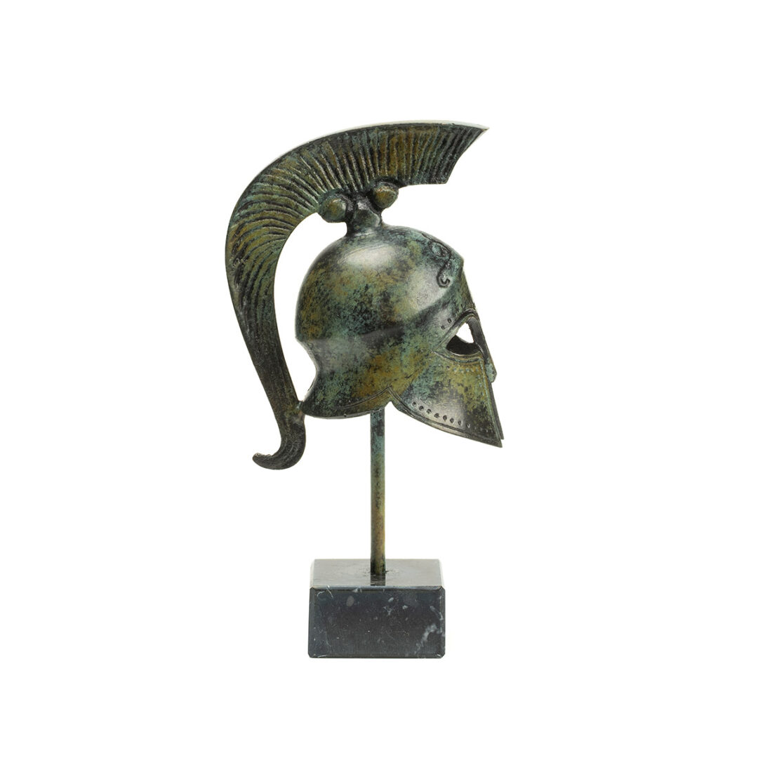 Spartan Helmet on Marble Base – Bronze Sculpture