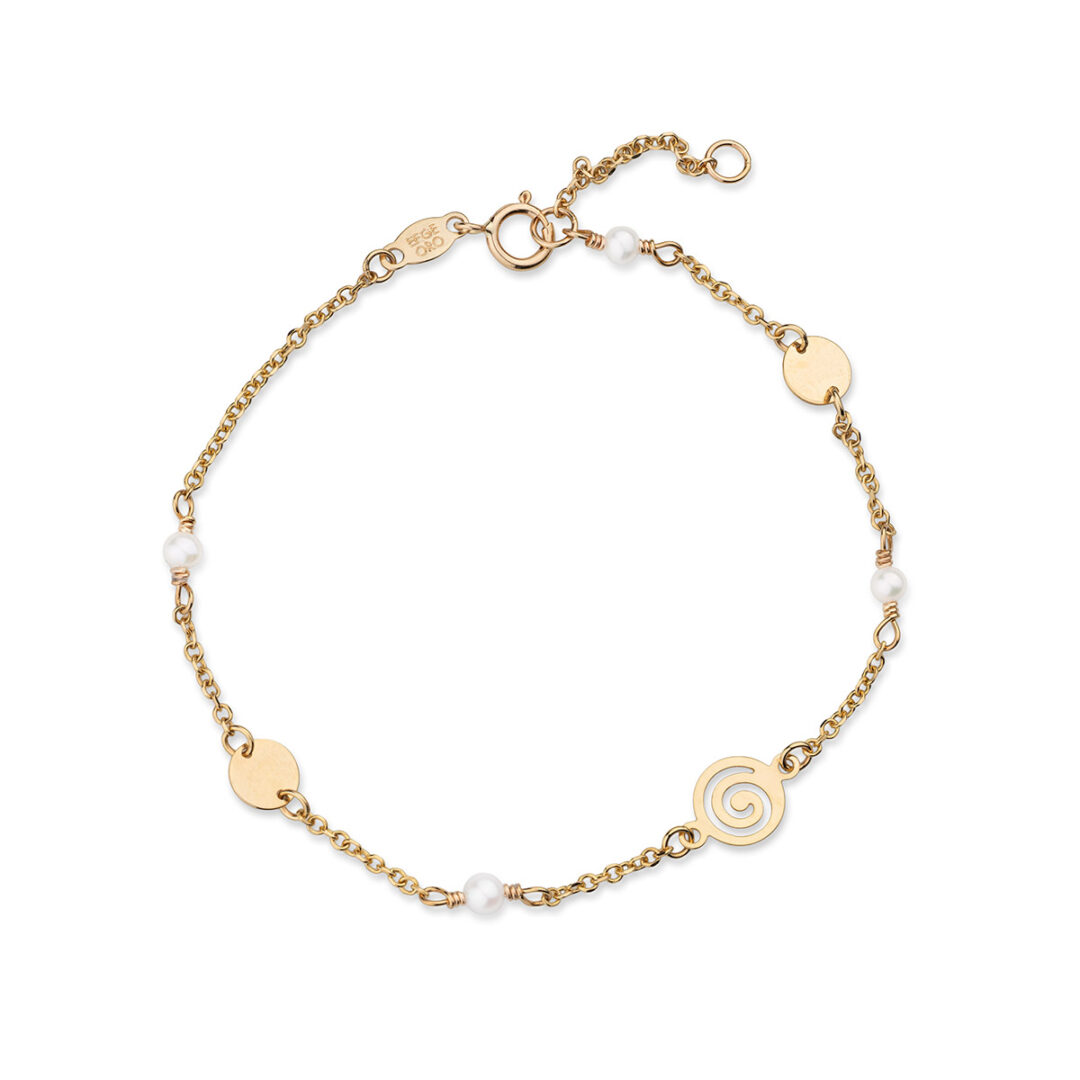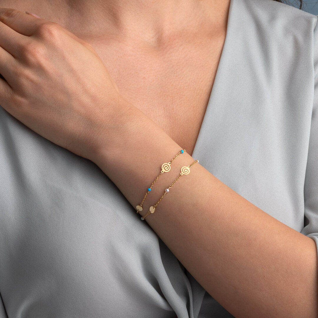 Spiral Gold Chain Bracelet with Pearls – 14k Gold