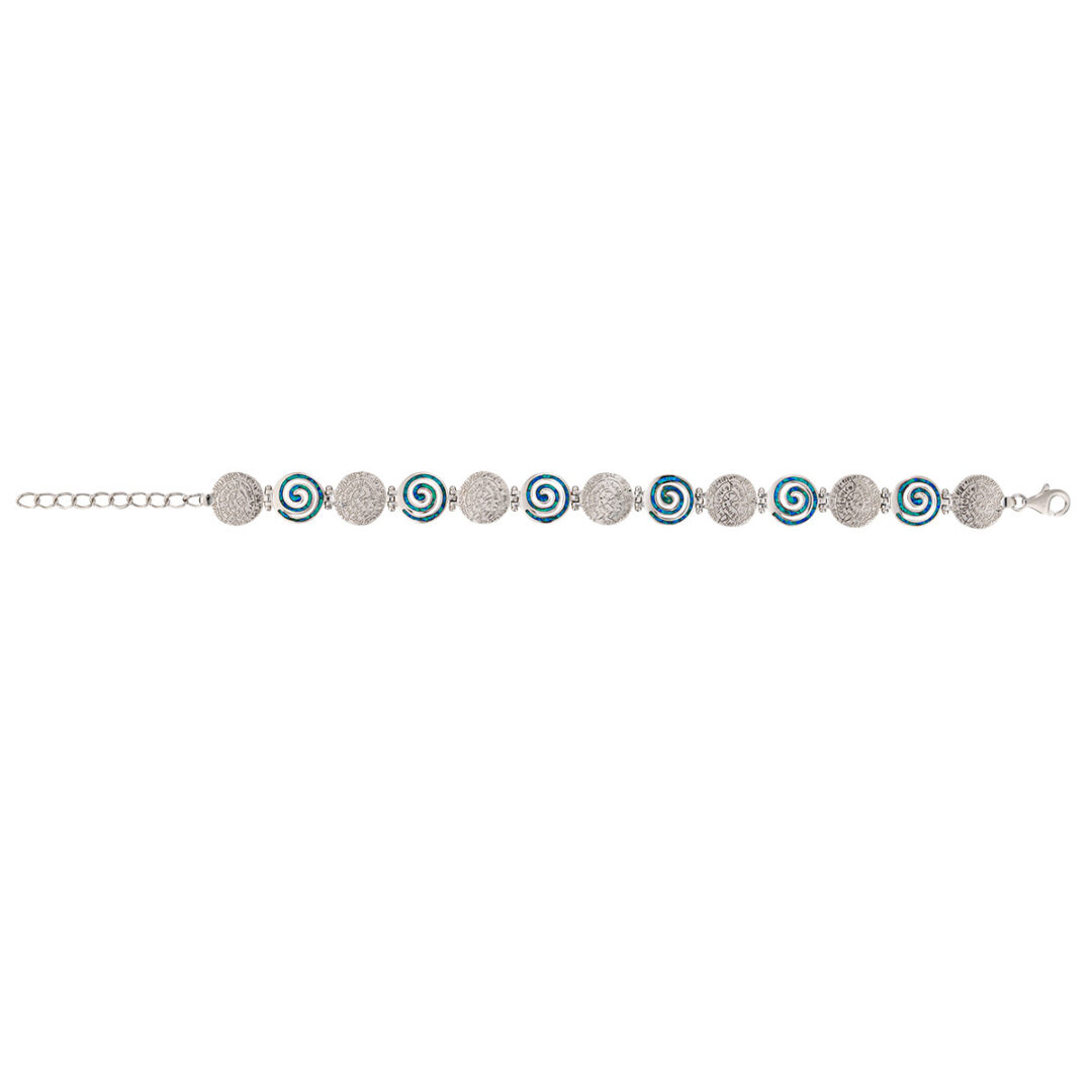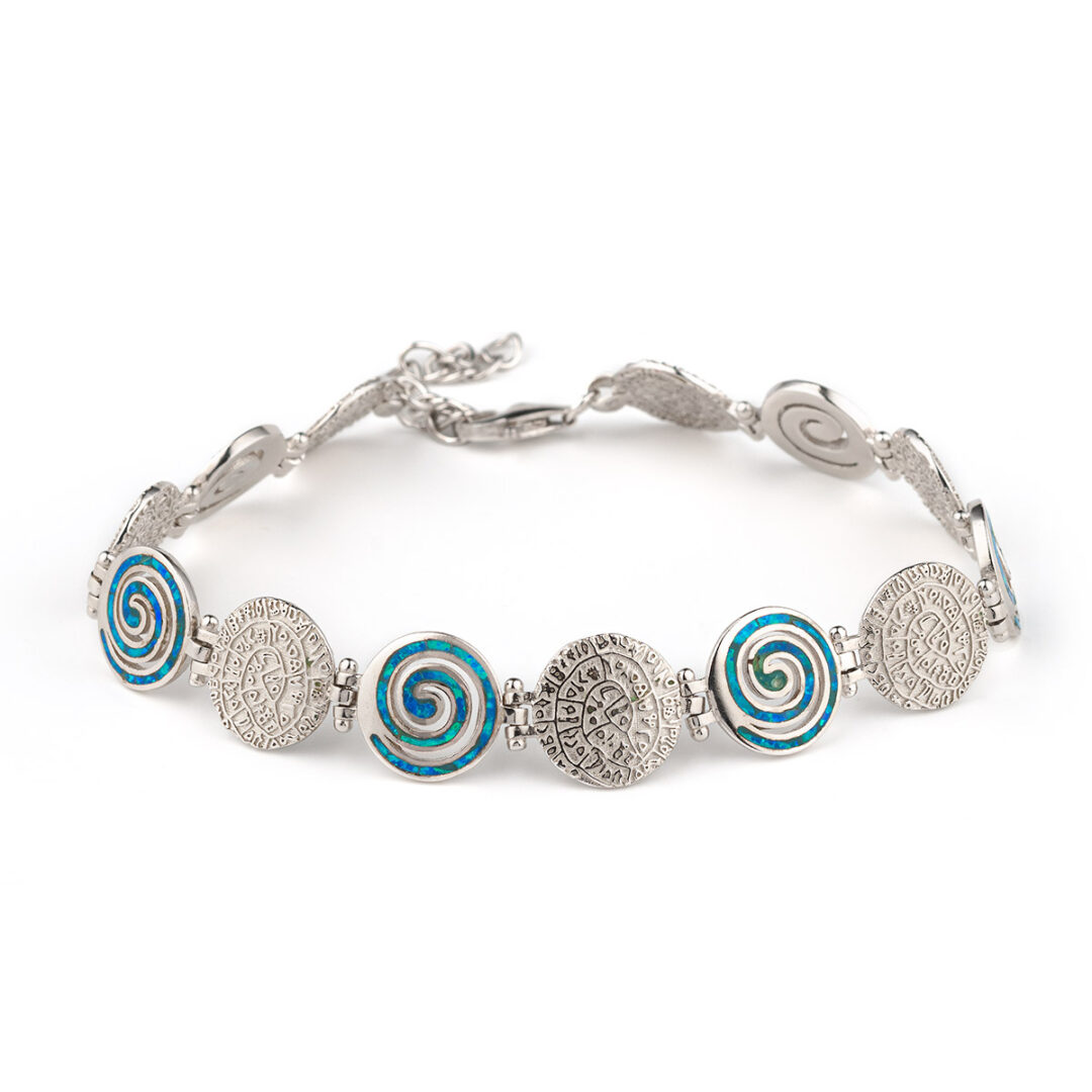 Spiral Phaistos Disc Blue Opal Bracelet – Sterling Silver