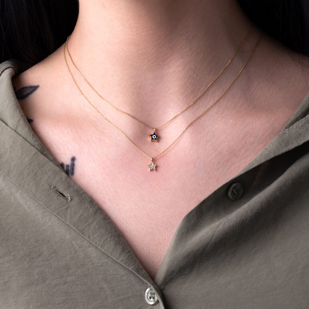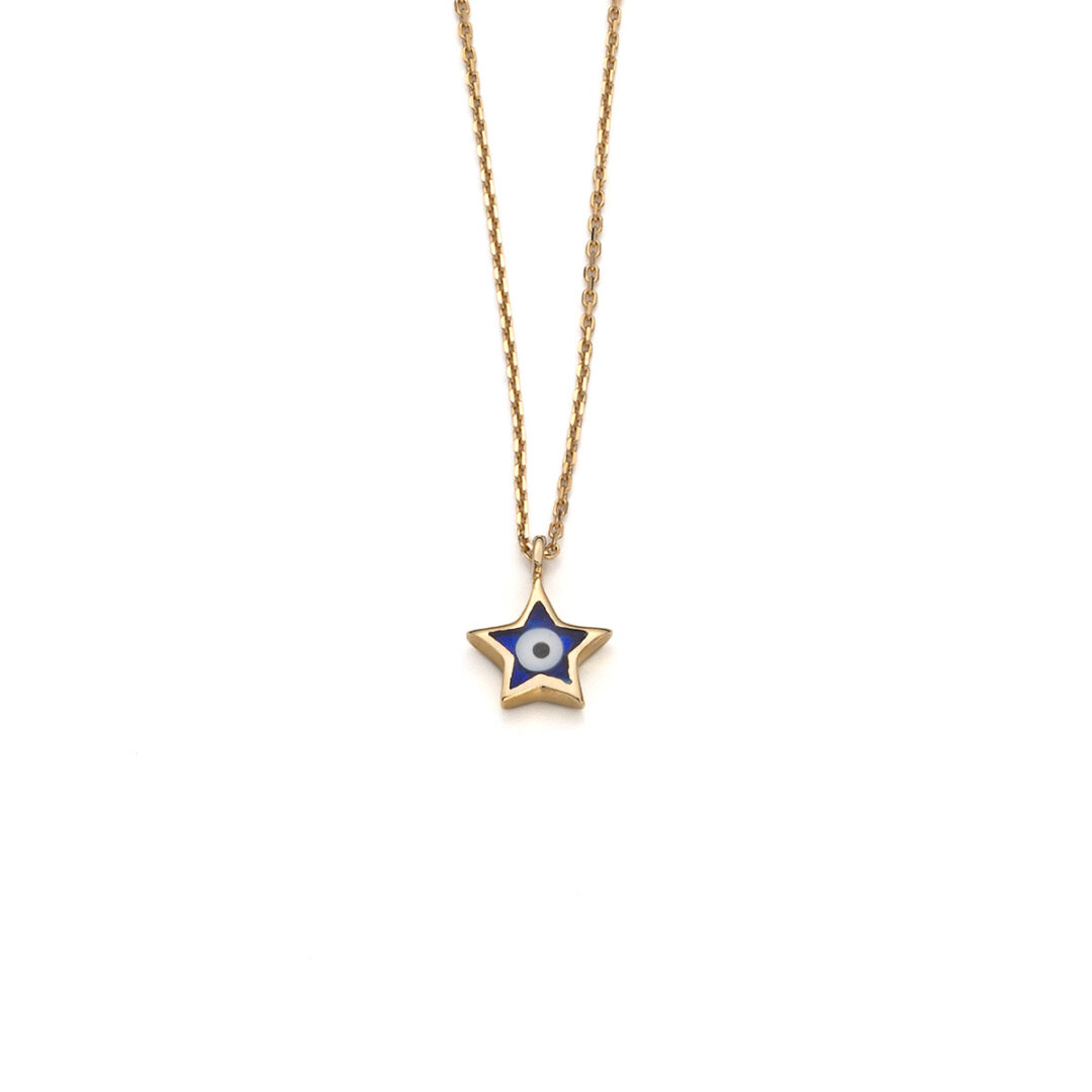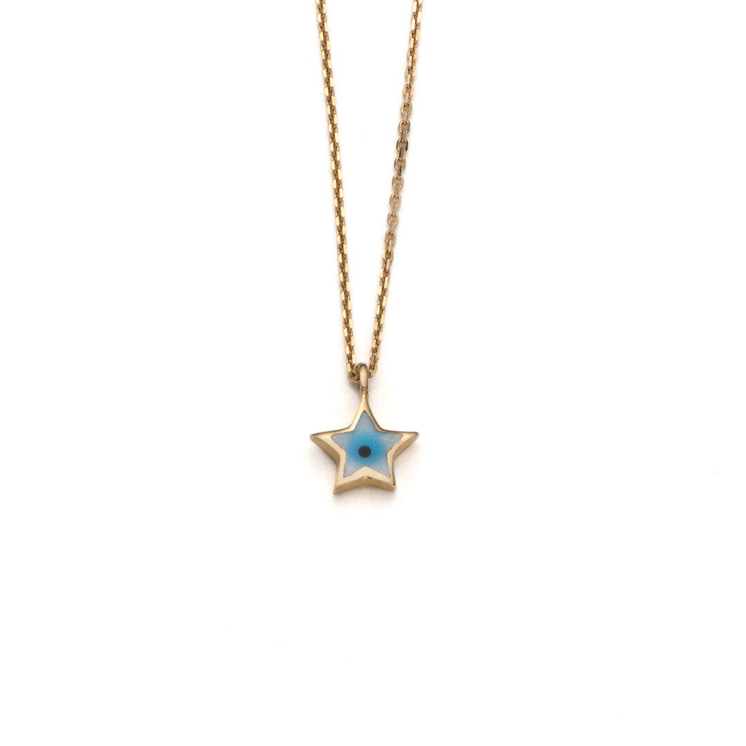 Star Eye Necklace with Enamel – 14k Gold