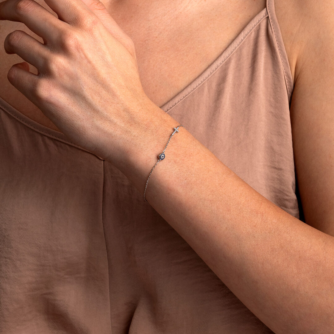 Sterling Silver Evil Eye Bracelet with Cross and Zircon
