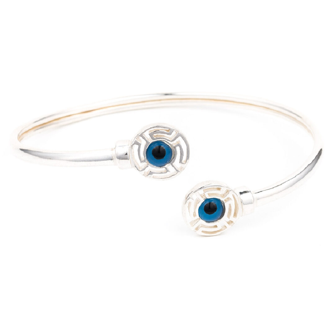 The symbol and superstition of the evil eye is one of the strongest symbolic images in the world. The earliest known evidence for belief in the evil eye goes back to ancient Greece and Rome. It is supposed to wear off evil to anyone who wears it and various cultures believe in that, however in Greece it’s blue because at that time blue eyes were not so common and were thought to give the evil eye, so the blue is like a mirror to them. Nowadays it’s widely known and has become a trend.