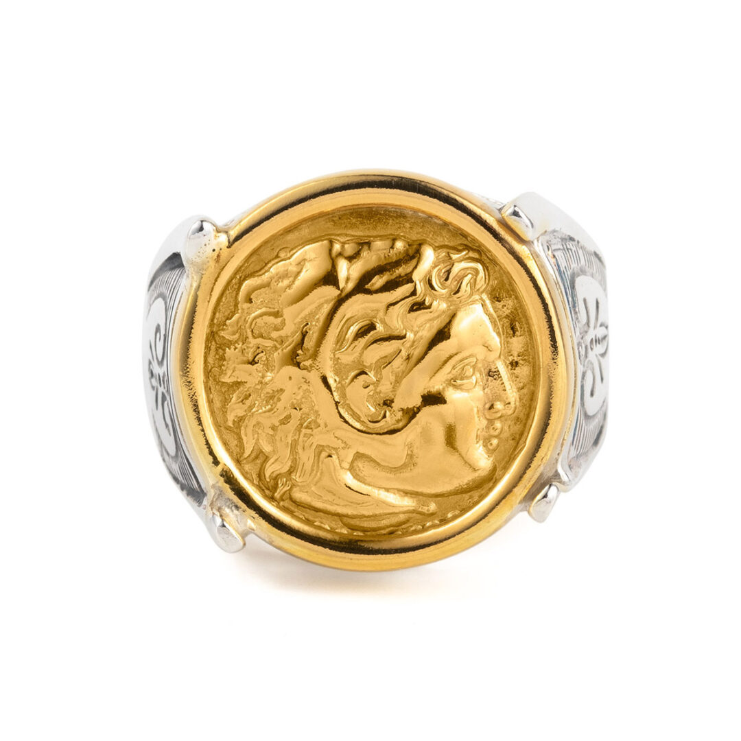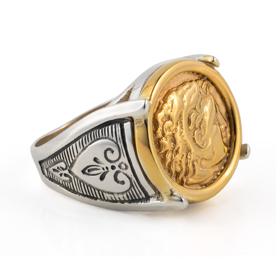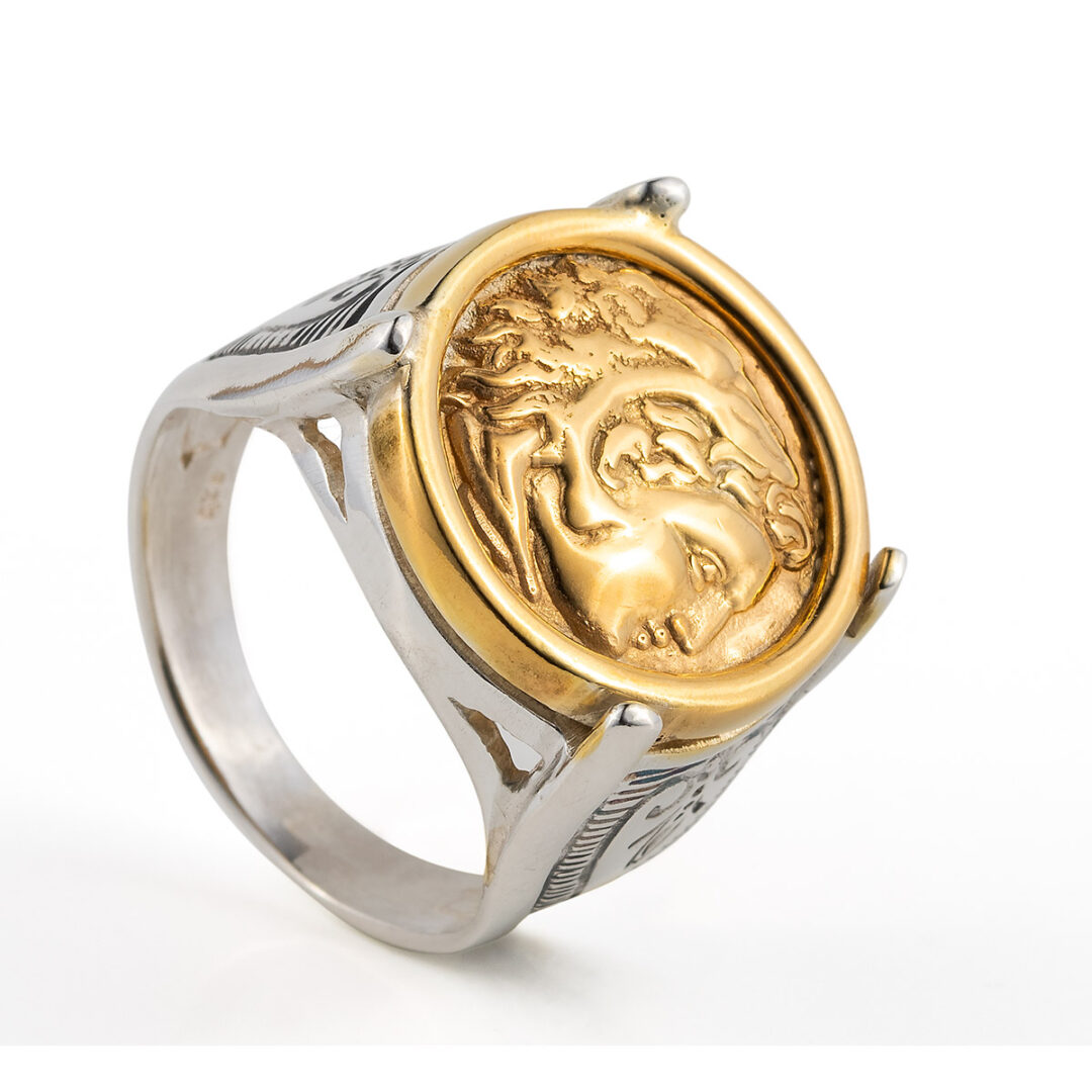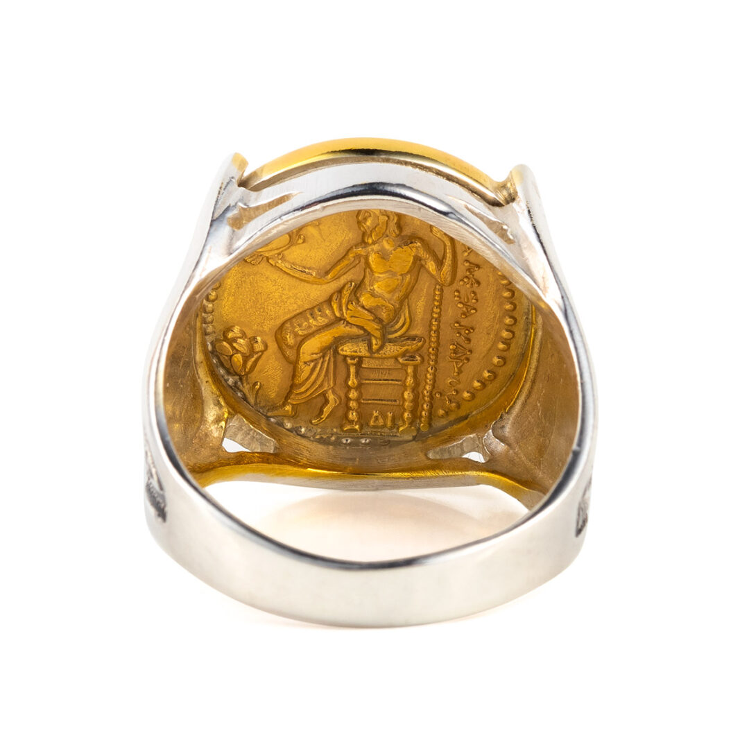 The head of Heracles, wearing a lion’s hide and perhaps bearing the features of Alexander, is engraved on the obverse. Enthroned Zeus, holding an eagle is depicted on the reverse. The inscription of Alexander is also engraved on the reverse. Hercules is a Roman hero and god, the most popular figure from ancient Greek mythology. He was the equivalent of the Greek divine hero Heracles, who was the son of Zeus and the mortal woman Alcmene. In classical mythology, Hercules is famous for his strength and for his numerous far-ranging adventures.