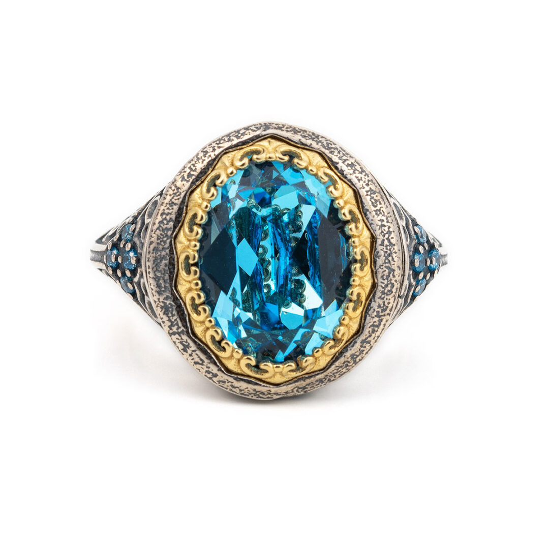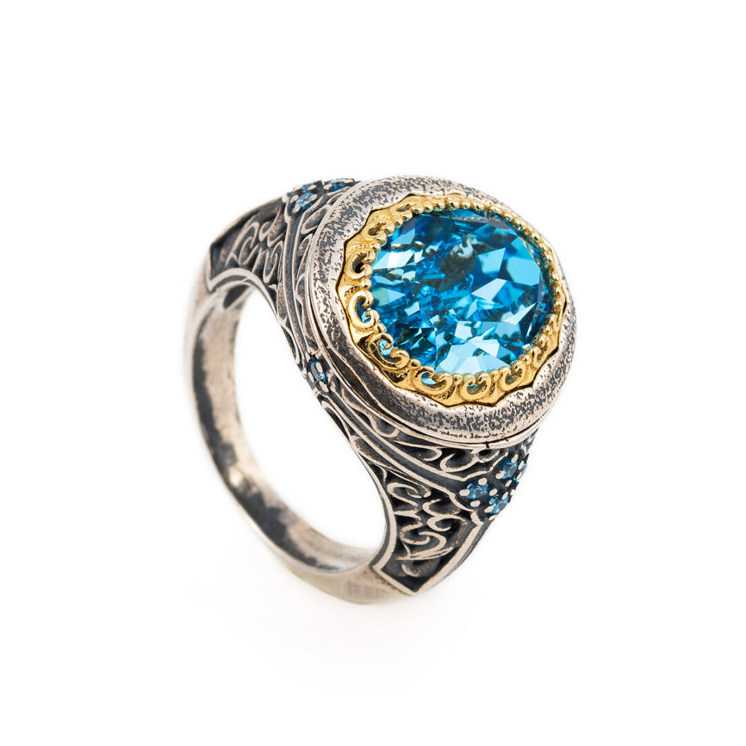 Sterling Silver Gold Plated Byzantine Ring with Swarovski