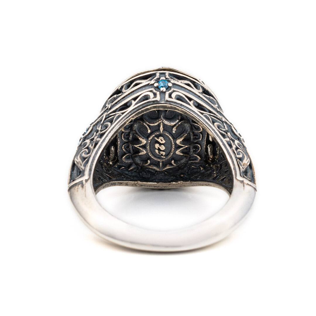 This ring is inspired by the Byzantine Historical period respecting Greek traditional art. A unique and elegant ring made in 925⁰ sterling silver and gold plated, decorated with Swarovski crystals.