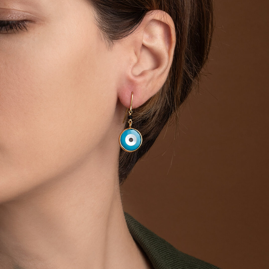 The symbol and superstition of the evil eye is one of the strongest symbolic images in the world. The earliest known evidence for belief in the evil eye goes back to ancient Greece and Rome. It is supposed to wear off evil to anyone who wears it and various cultures believe in that, however in Greece it’s blue because at that time blue eyes were not so common and were thought to give the evil eye, so the blue is like a mirror to them.