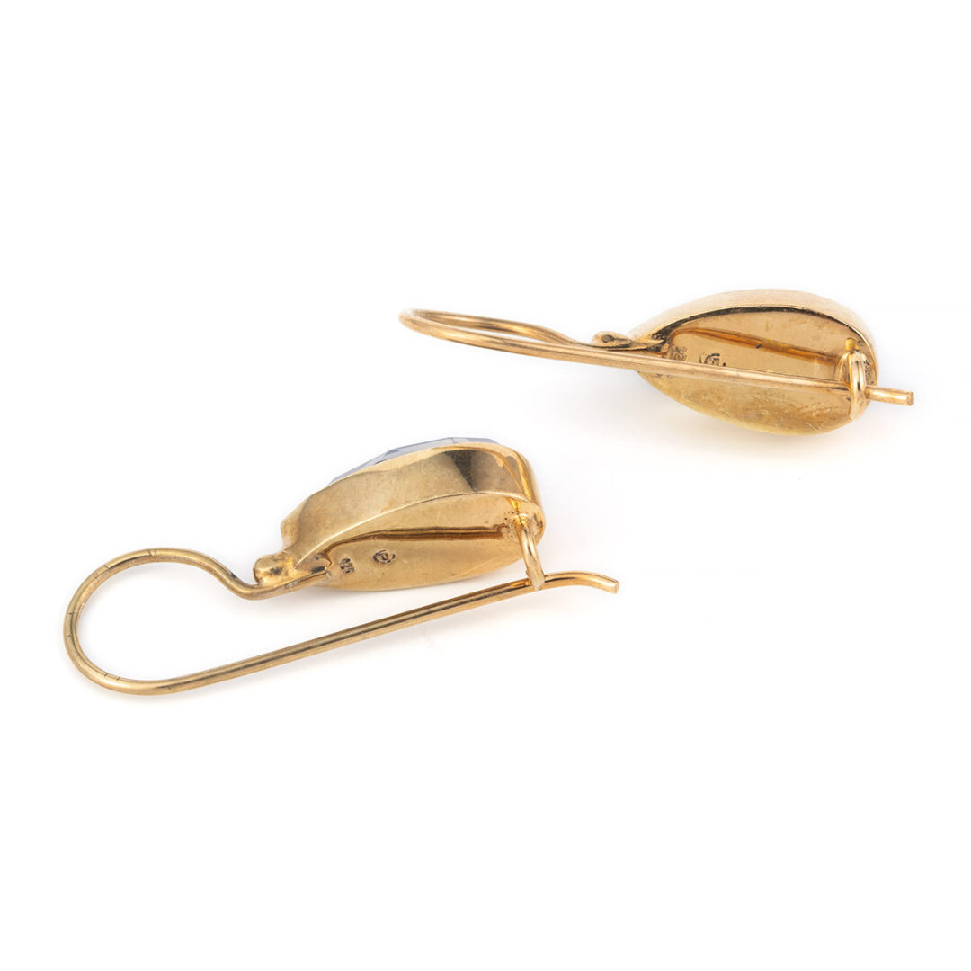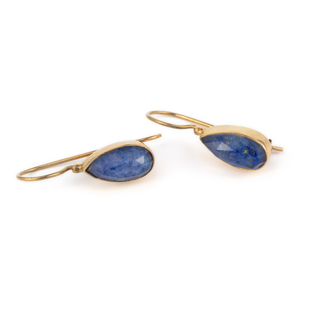 These earrings features a beautiful lapis lazuli gemstone set in sterling silver 925°and gold plated.