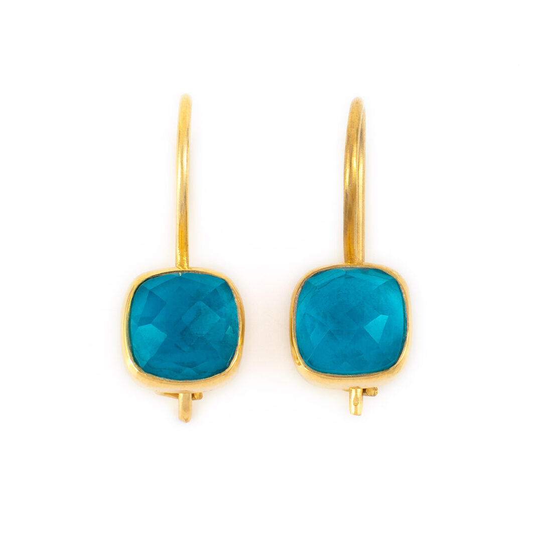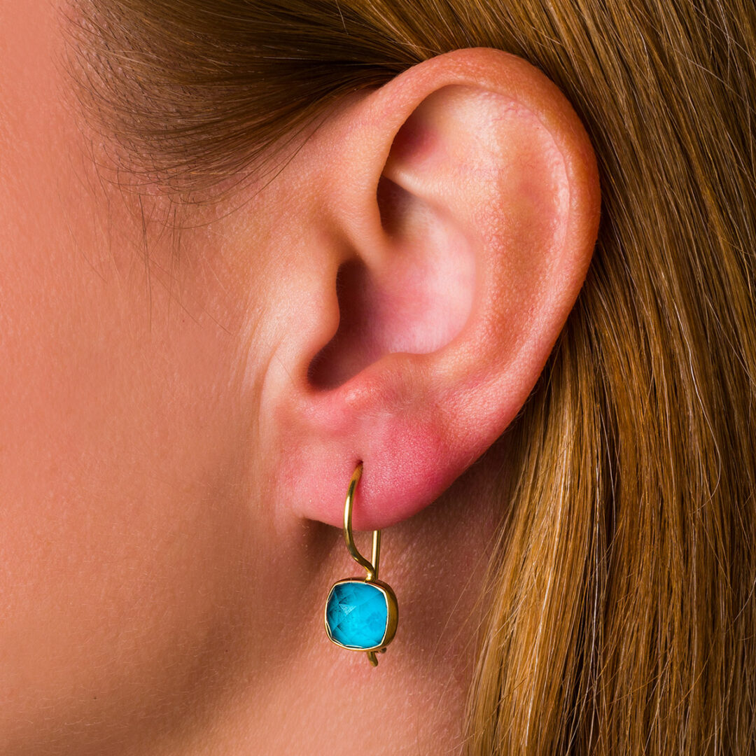 Doublet jewelry is very special piece of jewel due to the way it is compounded. Doublet is a modern and very fashionable design that was invented in order to make stones such as lapis lazuli, turquoise and other non-transparent stones glow and create unique colors from them. There is the unification of two gemstones, which usually consists of quartz and another non transparent stone. Quartz in this case gives radiance to the other stone and also volume. Due to its composition doublet jewelry needs to be looked after. To keep them in good shape you need to avoid contact with chemicals, such as soap or perfumes. Quartz has the tendency to lose its shininess when touched with sweaty hands, we advise you from time to time to you use a soft cloth to polish and give brightness to it.