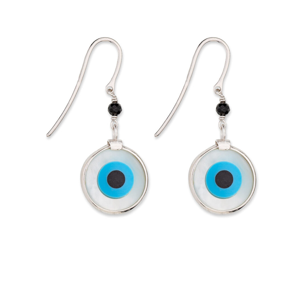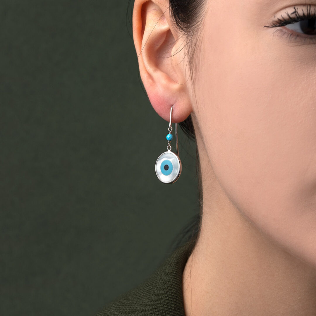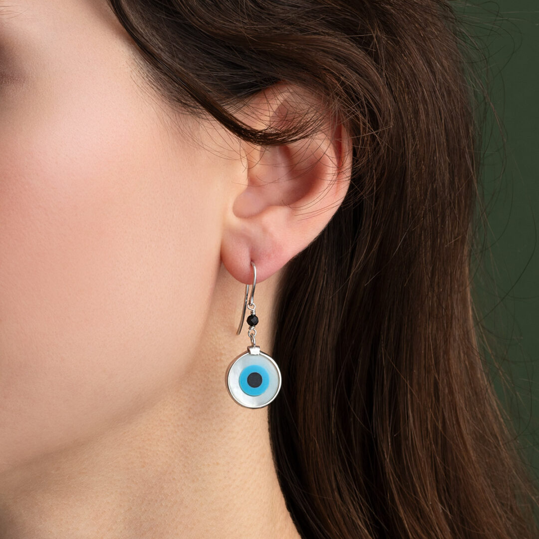 Sterling Silver Hook Earrings with Mother of Pearl Evil Eye