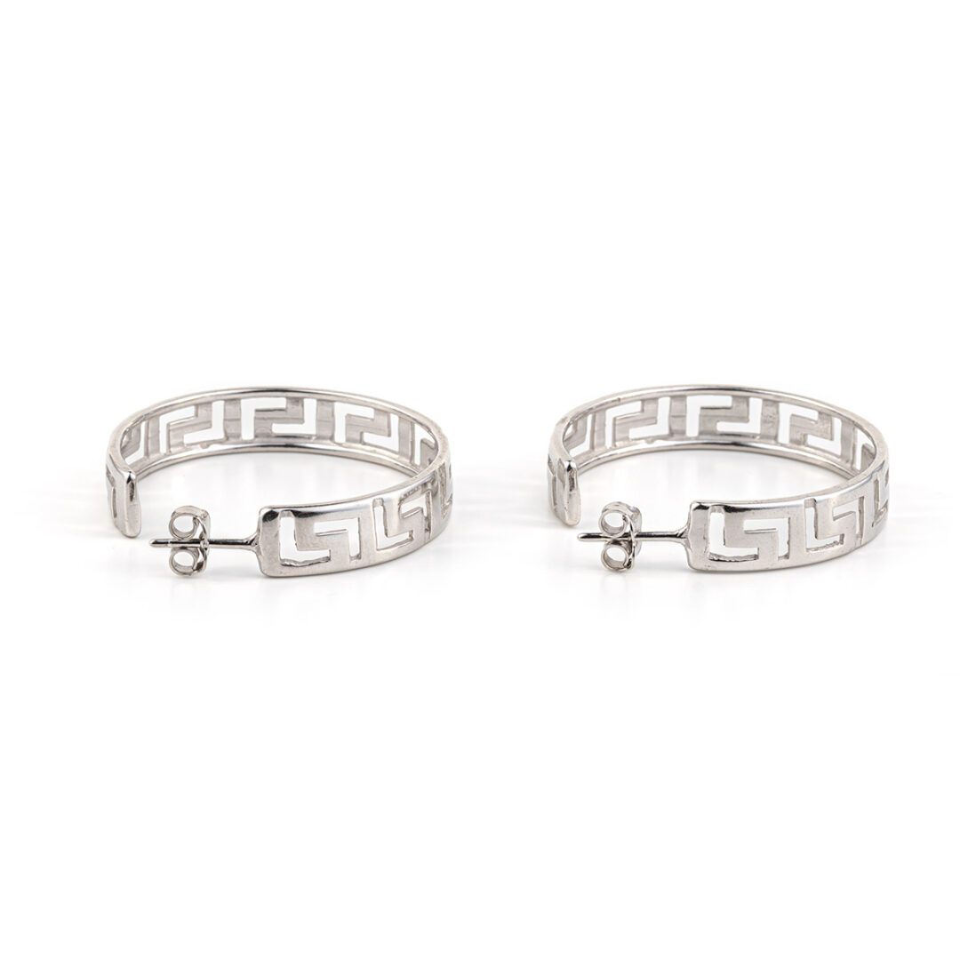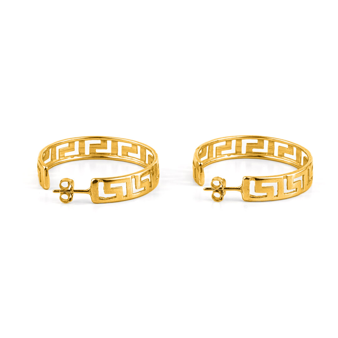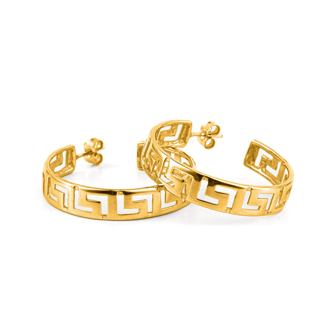 Earrings inspired by the Greek Key meander symbol.