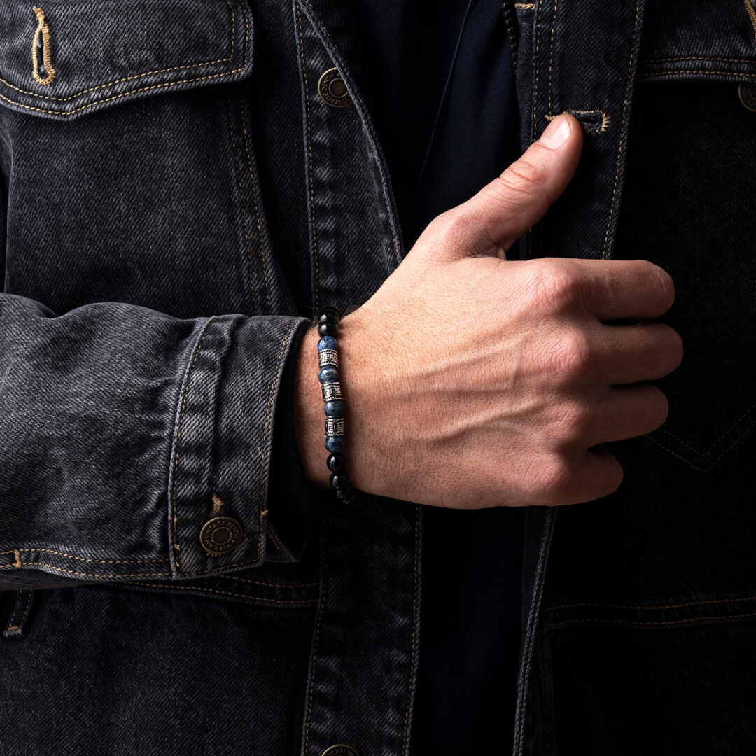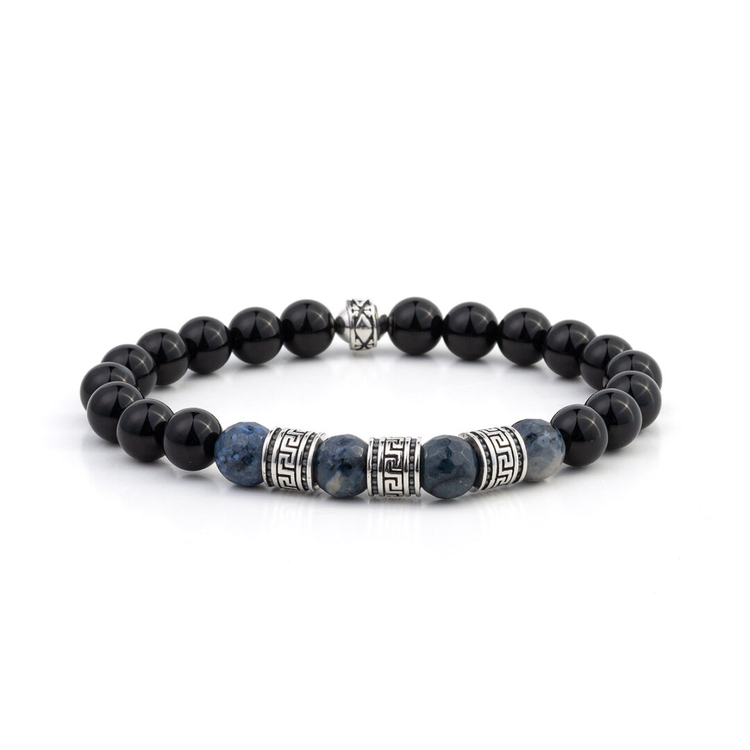 Meandros Motif Bracelet with Onyx and Sodalite Beads