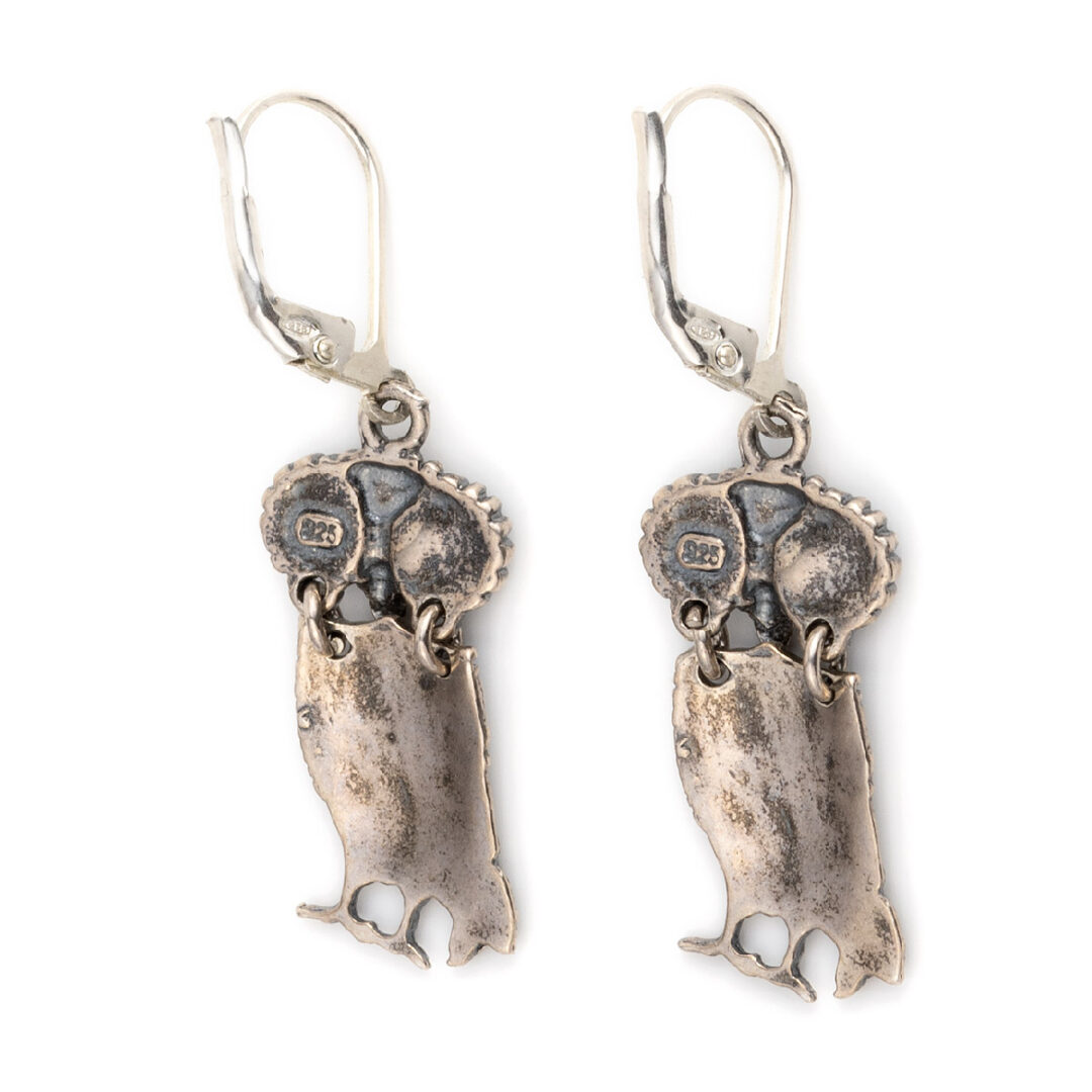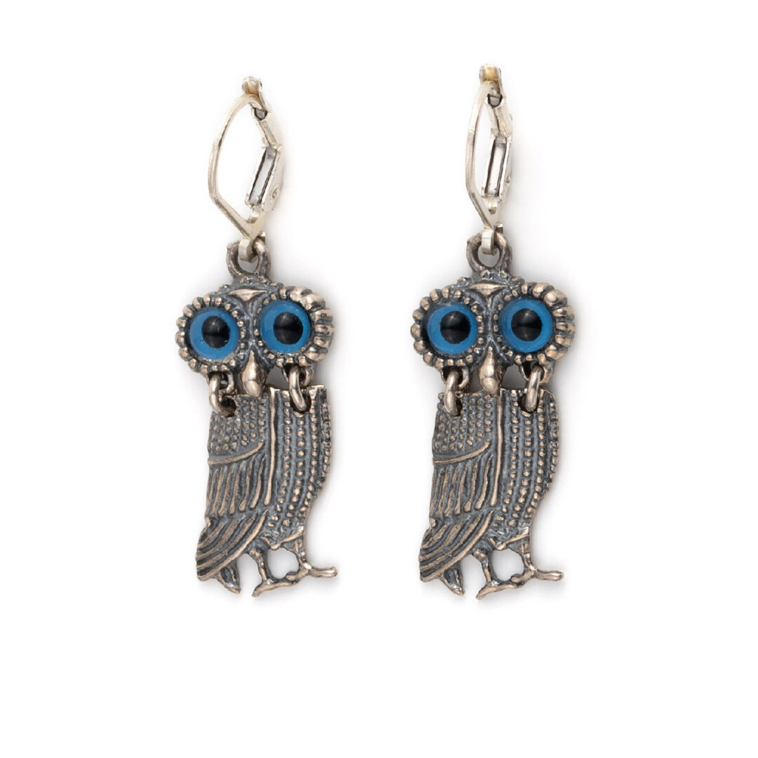 A fine pair of dangle earrings featuring the Owl of the goddess Athena.