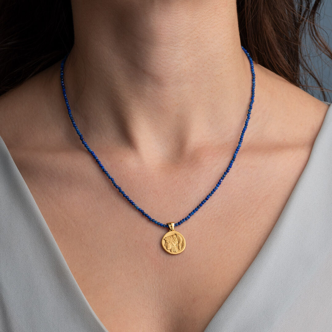 Stone string necklace with Athena pendant