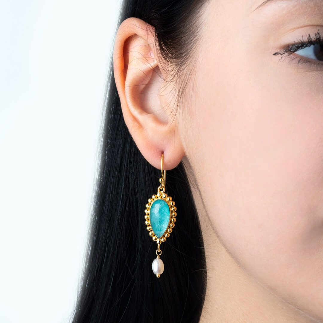 Teardrop Amazonite Earrings – 925 Sterling Silver
